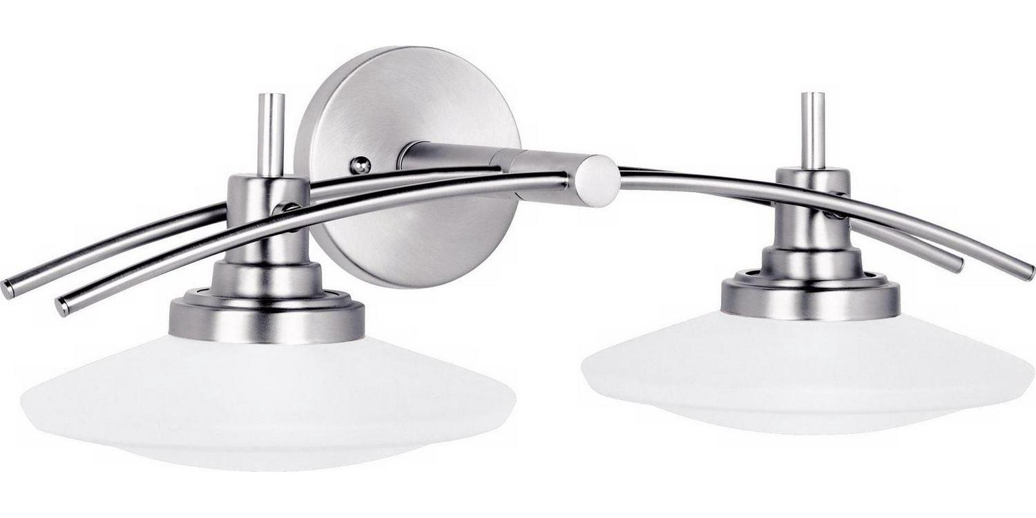 – Structures modern two light bath light fixture by Kichler Lighting. A bright look for bathroom vanity spaces.
