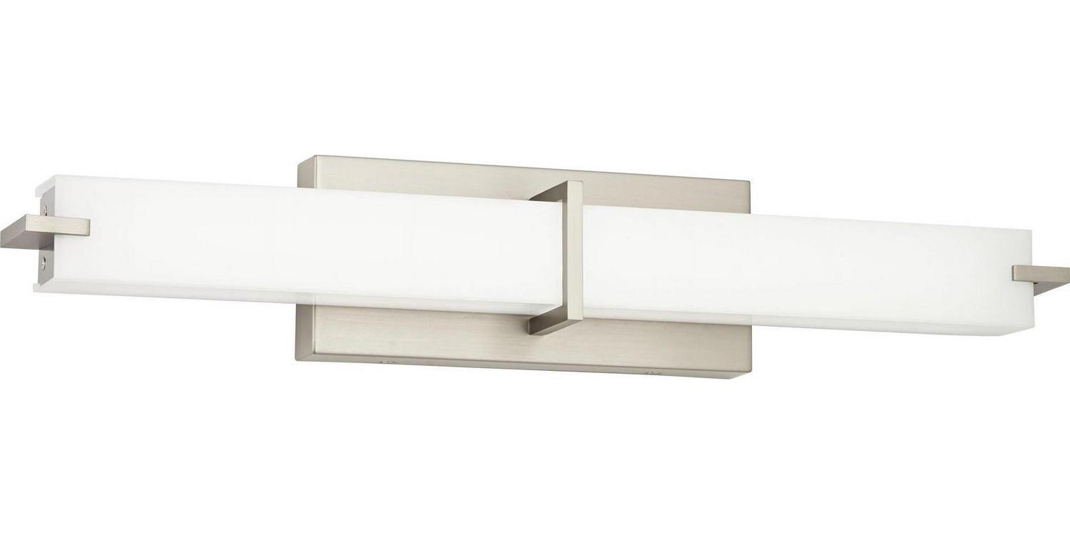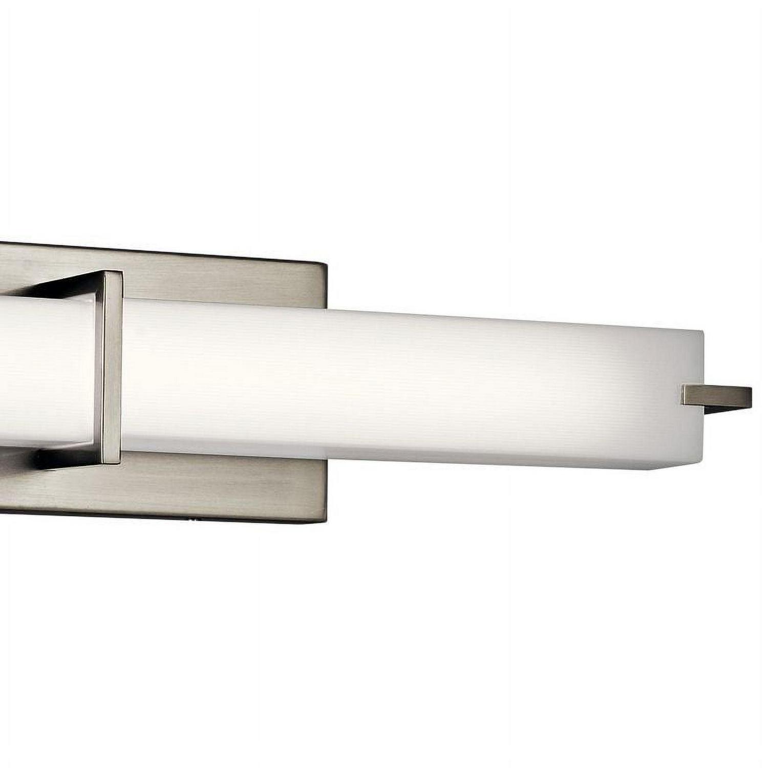 Kichler Lighting-11146NILED-Material: Plastic, Finish Color: Brushed Nickel, Width: 25.75″, Height: 4.75″, Depth: 4.25″, Height From Outlet Box: 2.25″, Backplate Width: 11″, Backplate Length: 4.75″, Lamping Type: LED, Number Of Bulbs: 1, Wattage: 19 Watts, Cri: 90, Color Temperature: 3000 Kelvin, Lumens: 1420, Dimmable: Yes, Moisture Rating: Damp Rated, Desc: This Led, 26 Inch Linear Wall Fixture Is A Versatile Piece. The Brushed Nickel Finish And A White Acrylic Diffuser Create A Crisp Look And Bright, Clean Ambience. Horizontal Or Vertical Mounting Options Add To The Versatility Of This Fixture. Mounting Direction: Vertical Or Horizontal / Back Plate Height: 4.75 / Back Plate Width: 11.00 / Dimable: Yes. ,-1 Light Linear Bath Vanity Approved For Damp Locations – With Transitional Inspirations – 4.75 Inches Tall By 25.75 Inches Wide