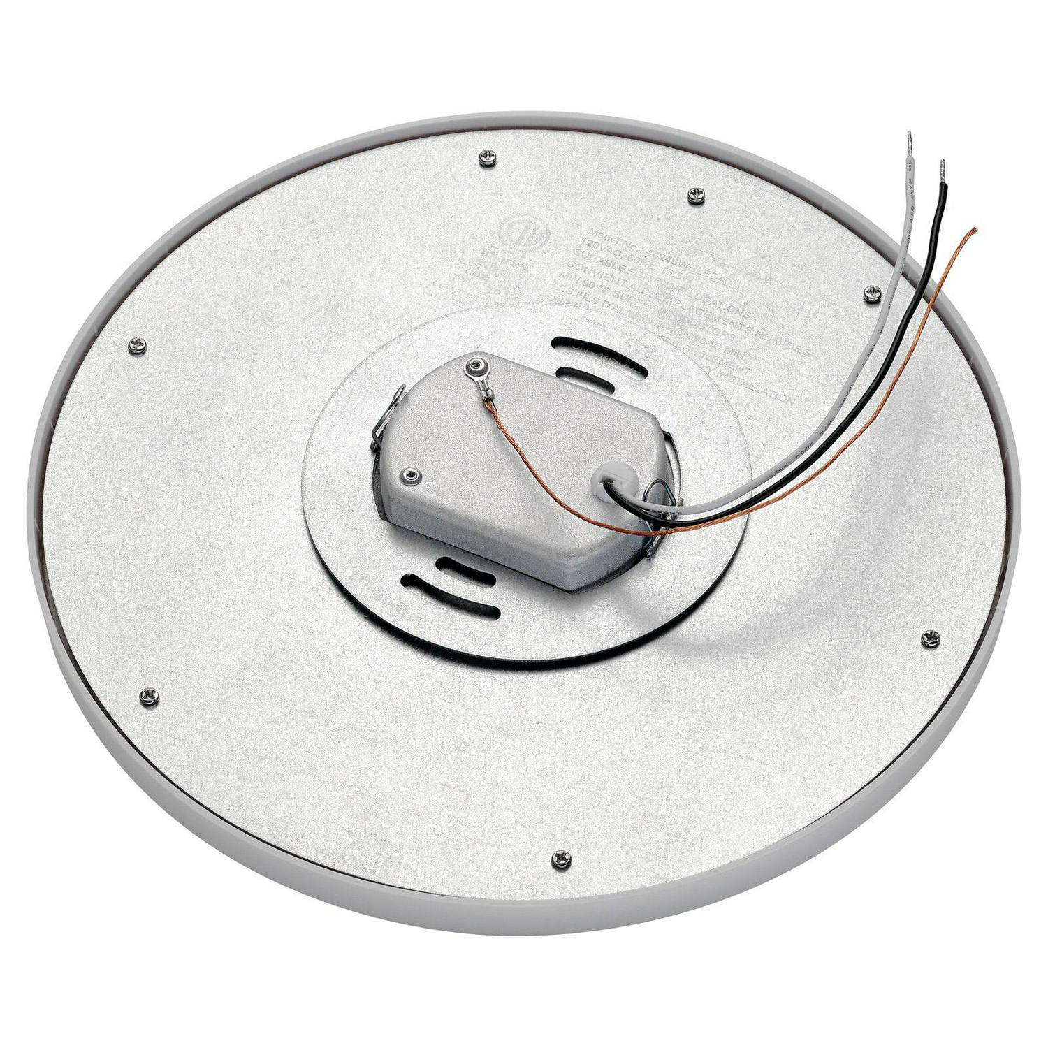 The Kichler Zeo 4424 Round Flush Mount Light is an exceptional addition to any modern bathroom or bedroom. This round light is made from durable, lightweight acrylic with a frosted shade. The frame mounts flush to the ceiling and provides bright, clean light from a single bulb. Choose from available size and finish options. Bulb is included.