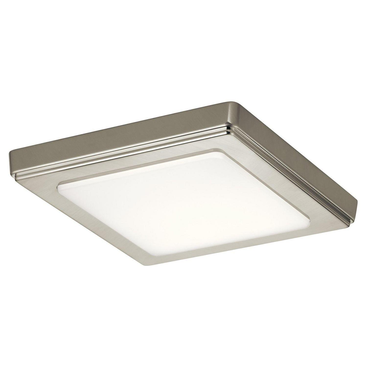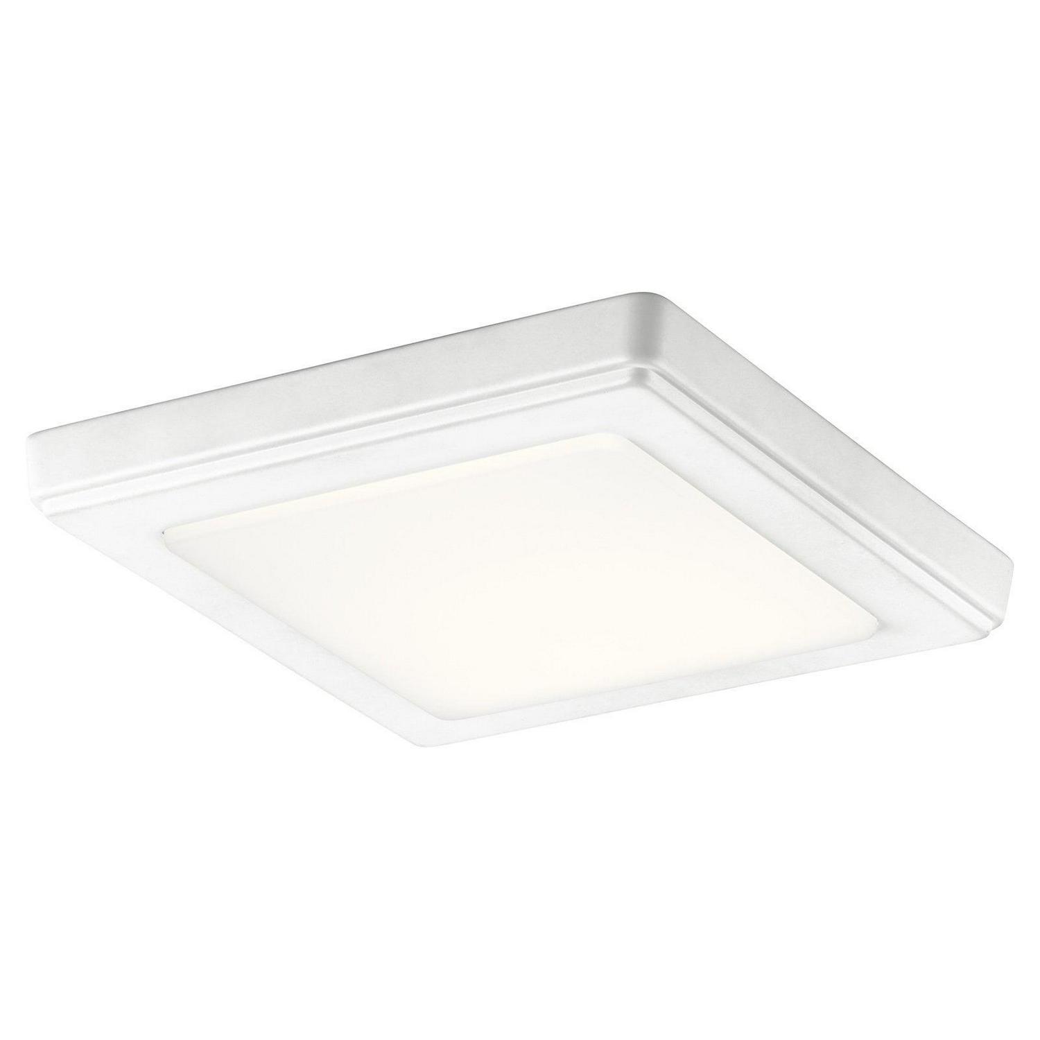 Start planning a new room design with the Kichler Zeo 4424 Square Flush Mount Light. This overhead light boasts a durable, lightweight frame made from acrylic with a flush-mount design. A frosted shade conceals the socket and helps diffuse the light for bright, wide-reaching results. Select among the size and finish options (as available). Bulb is included.