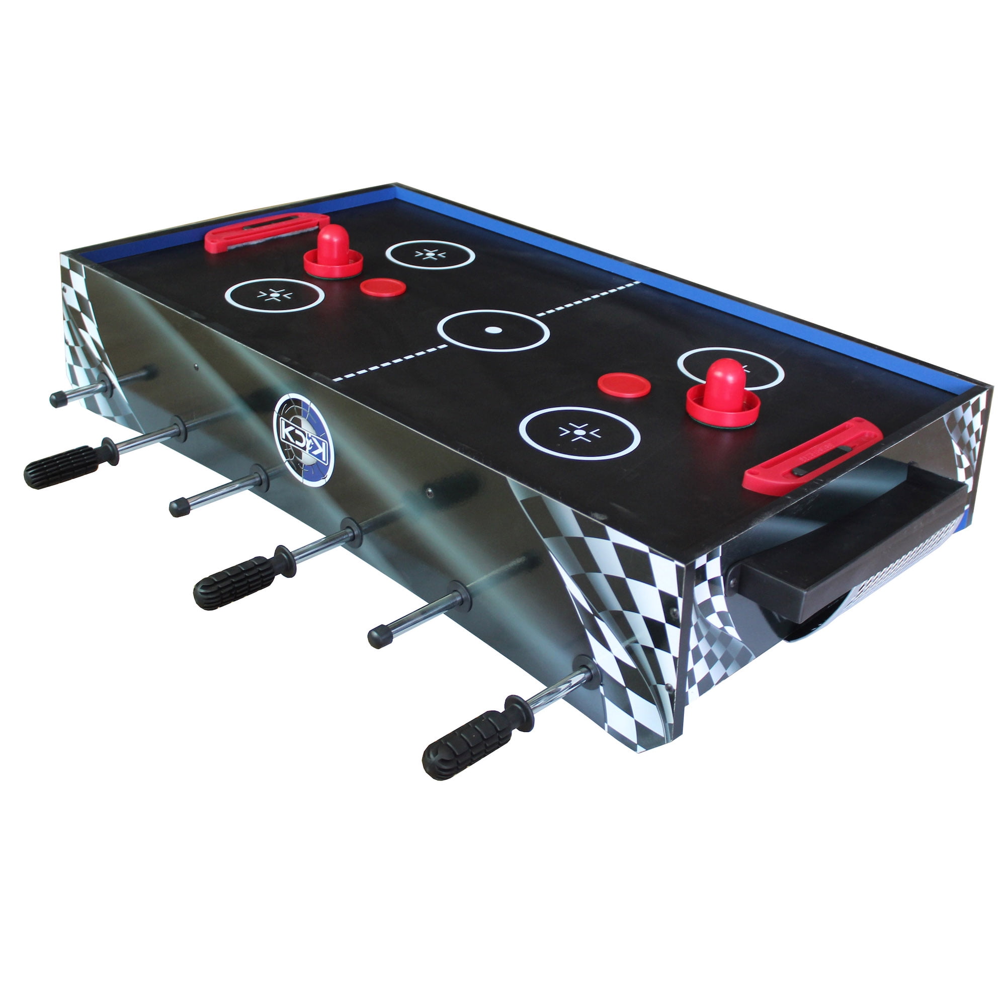 The KICK Convoy is the most convenient tabletop Foosball table in the industry! The table save space in your room, and lets you enjoy, a game of Billiards, Air-Hockey, Table Tennis and a Foosball match with your buddy, on one table! . Take this portable yet sturdy table wherever you go for hours of Foosball or ice hockey entertainment. Join the KICK family by purchasing the latest addition to the our Foosball table line up, the KICK Convoy Foosball Table!
