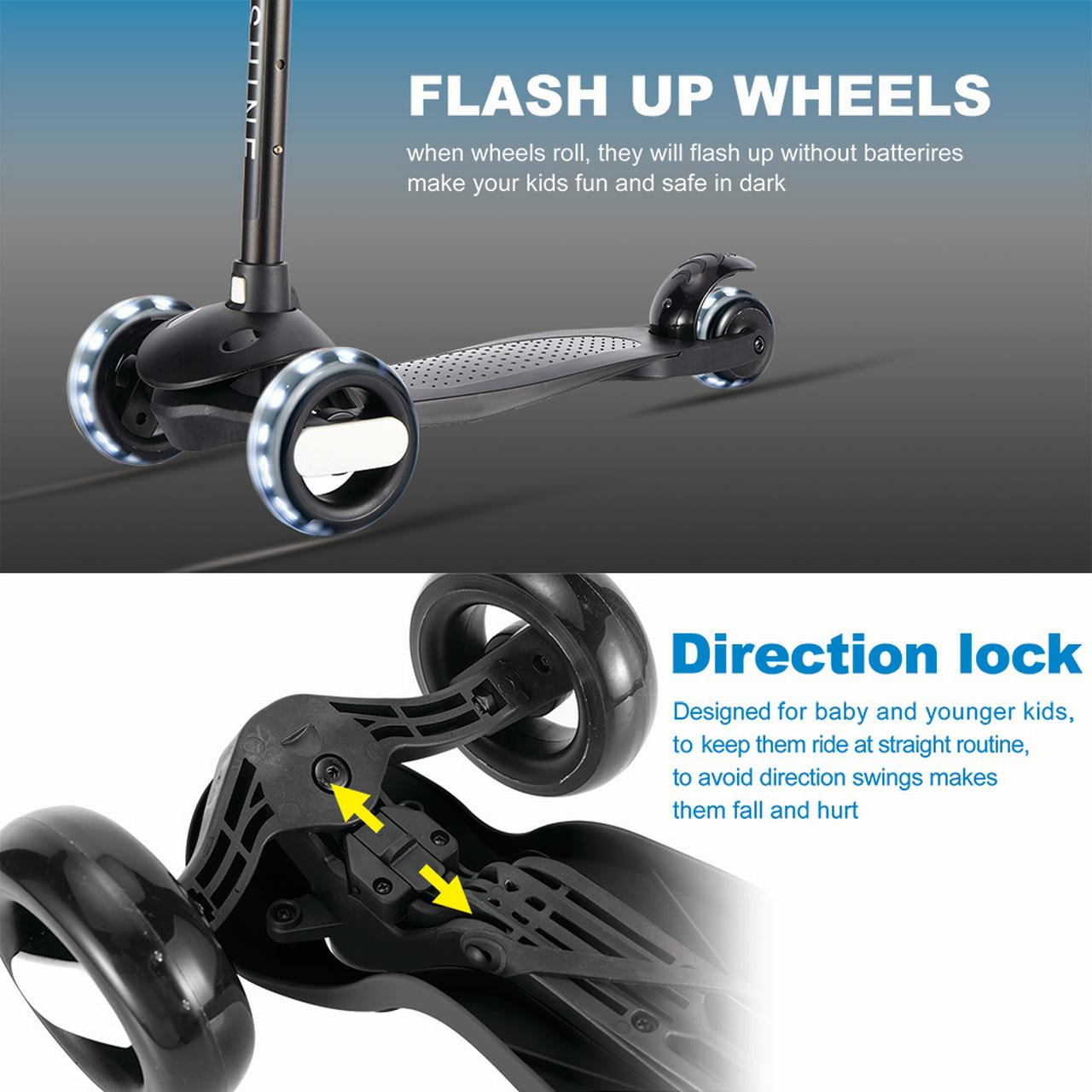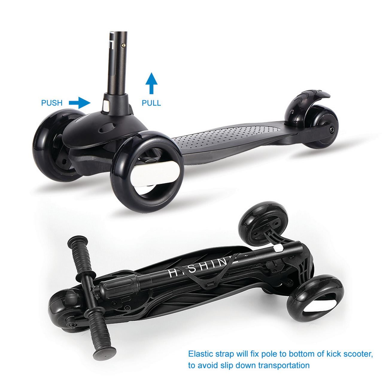 Kick Scooter for Kids with 3 Big Light Up Wheels, Lean to Steer, Adjustable Height, Wheel Scooter for Boys Girls Toddler, Black