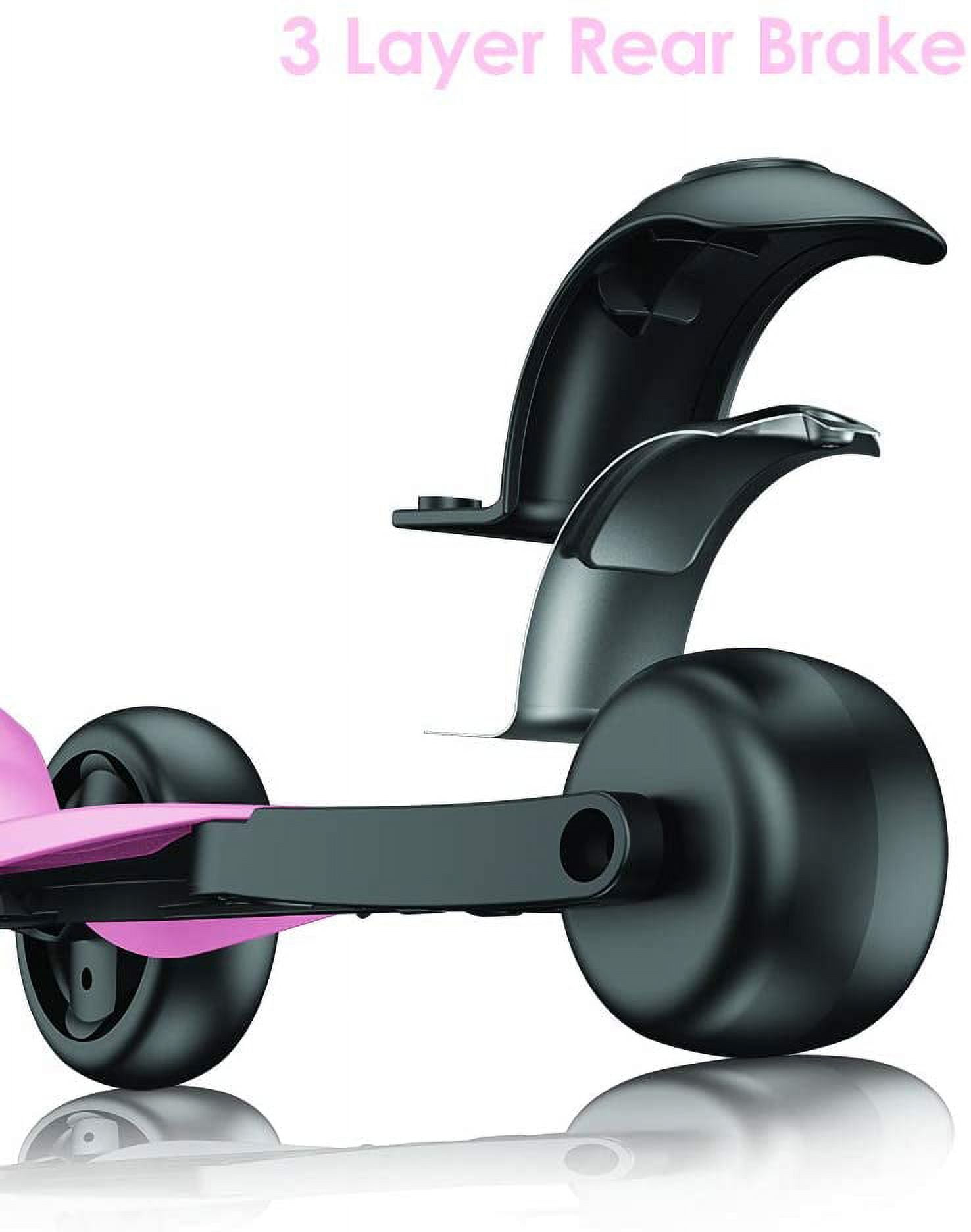 【Easy to Carry】 – Take this kick scooter in a few seconds by removing the pole, and use rubber strap under deck to fix it. It will save space for you to storage, it’s convenient for you to take it with outdoor activities. 【Lean to Steer】 – Children control scooter by using their weight to turn left and right, it will be good for children to develop balance and coordination. Equipped with extra widen deck is large enough to fit both feet of kids, rear brake mechanism helps children to stop the kick scooter easily. 【Flashing Wheels 】- Features 3 flashing wheels, when it is turning, it will be bright enough during day and night, it is pretty safe for kids playing outside at night. Material of wheel is also friendly to your floor, there is no scretch after it rolls. 【Adjustable Height】 – For different ages of children, height of this kick scooter can be adjusted according to your personal need. Rubber handle grip is soft and anti-slip, improve safety to yoru kid. 【High Quality 】- Made of aluminum and ABS plasic material is sturdy enought to hold up to 110 lbs, to provide stabiliy make sure kid to enjoy this kick scooter.