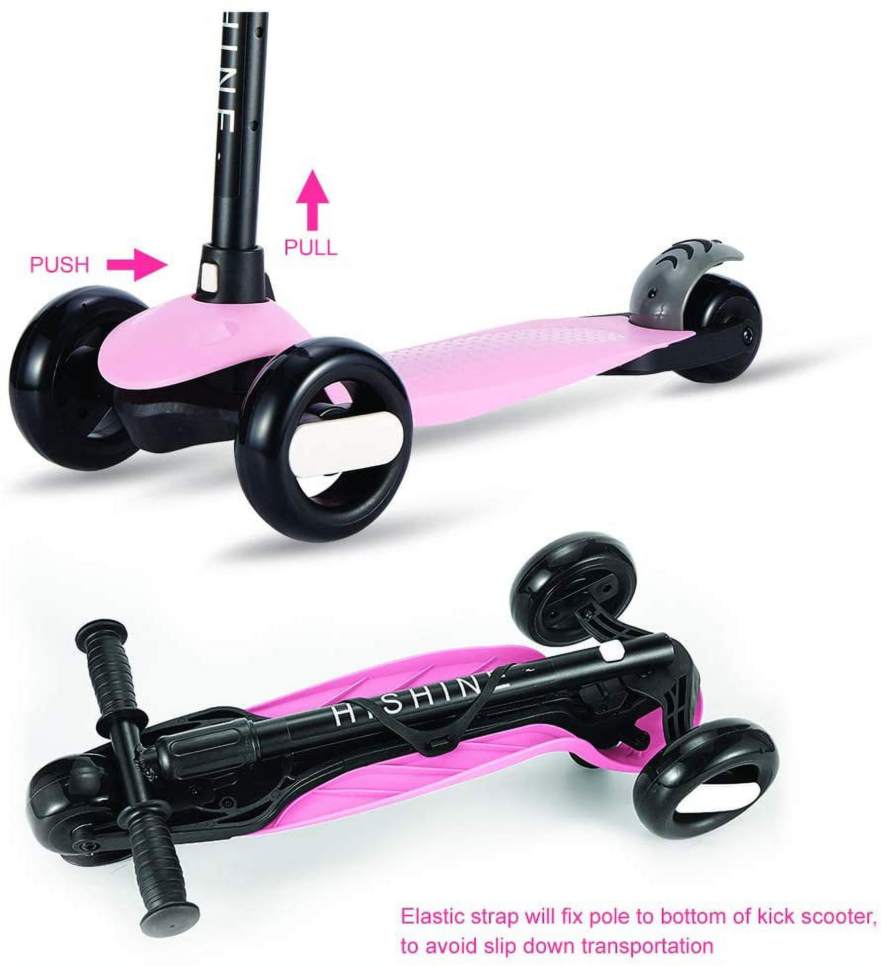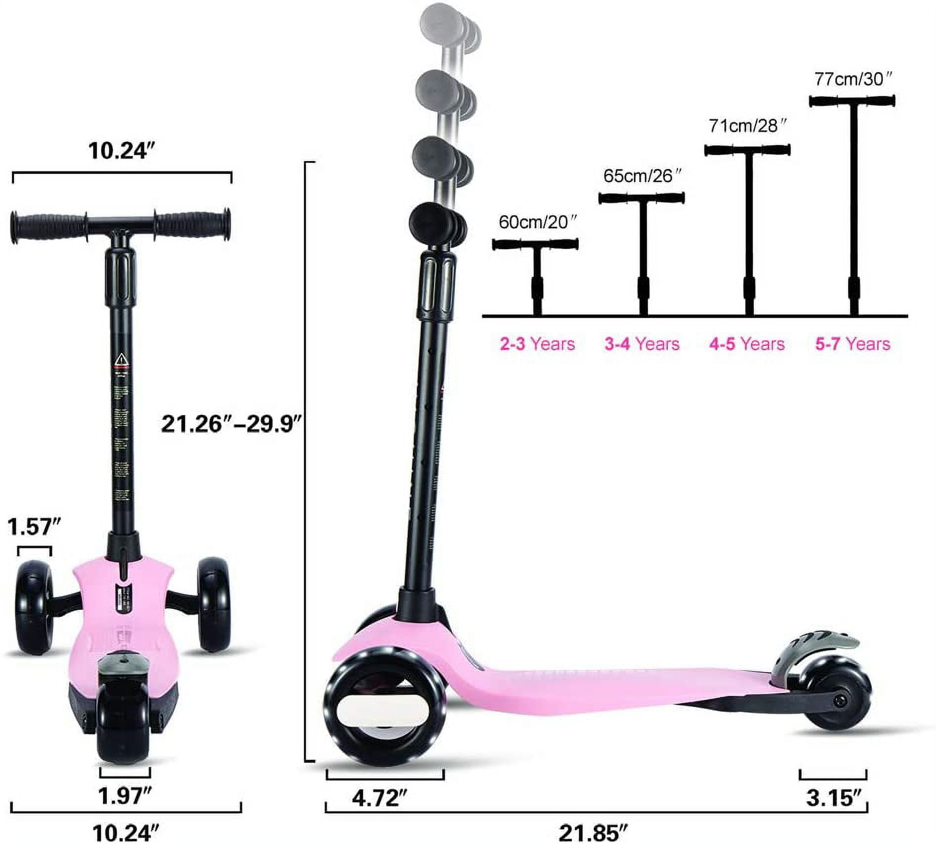 Kick Scooter for Kids with 3 Big Light Up Wheels, Lean to Steer, Adjustable Height, Wheel Scooter for Boys Girls Toddler, Pink