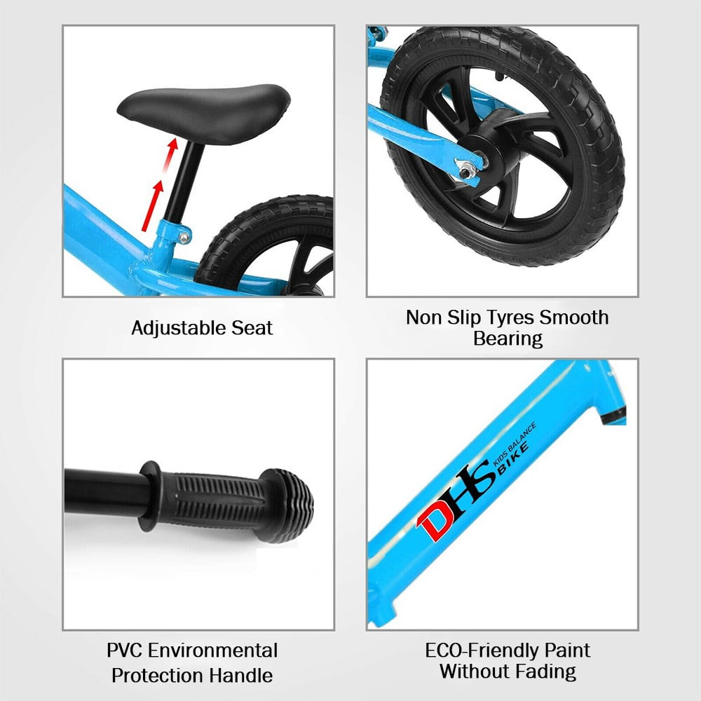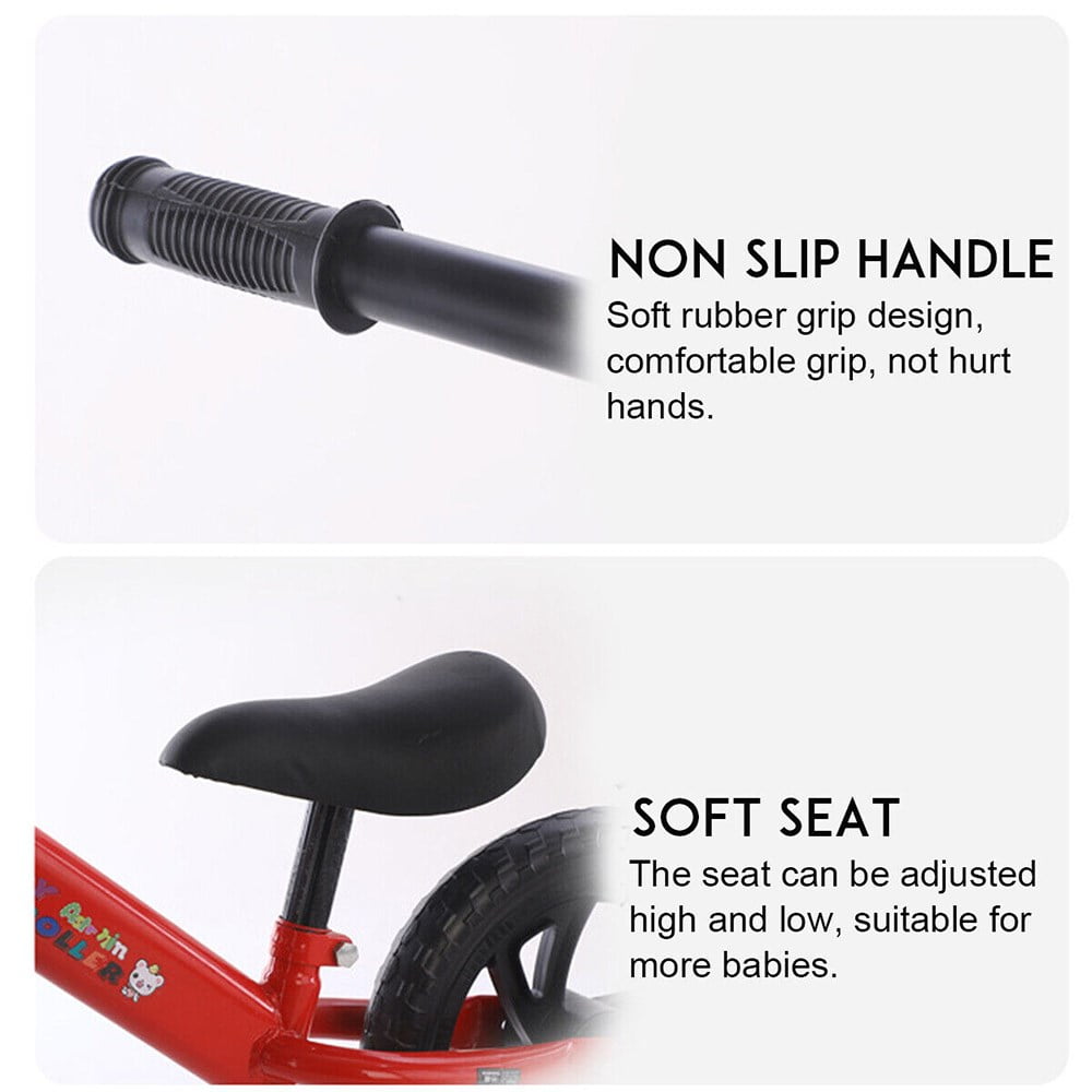 Features: 1.Aiding Walking: This balance bike can help toddlers gradually develop their coordination and learn to walk. With this invaluable aid, children will be courageous to explore the world by feet. 2.Carbon Steel Metal Frame: The bicycle frame is made of carbon steel, which is strong and reliable enough to provide many hours of learning and use. 3.Delicate and Durable: Due to the latest technology, the welding is excellent, so the bike is beautiful and durable. 4.Adjustable Seat Height: The soft and comfy seat can be extended from 33cm to 45cm. 5.Non-slip Foaming Wheels: The foaming wheels can avoid slips, letting children ride on the toy more safely. 6.360-degree Adjustable PVC Handle: The handle is flexible and easy to use. Specification: Type: Balance Bike for Kids Net Weight: 1.71 kg Suitable For: 2-6 years old Children of 80-125cm height Material: Carbon Steel & Foaming Wheel Color: as the pictures show Seat Height: 33 to 45 cm Dimensions: 78 cm(L) x 55 cm(H) Max Capacity: 36 kg Package Included: 1 * Kids Balance Bike