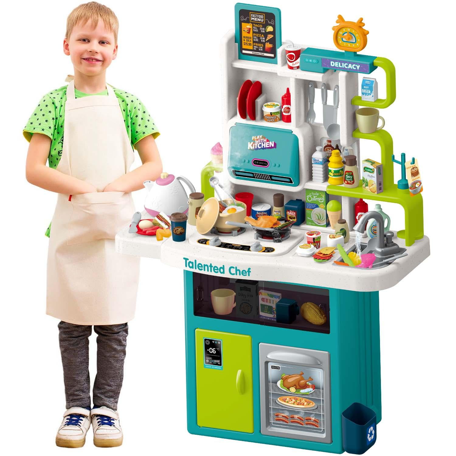 Kid Odyssey 41 inch Play Kitchen Set, 103 PCS Kids Kitchen Playset with Light, Sound, Sink& Water Spray,Pretend Play Food Toys for Boys Girls Ages 4-8