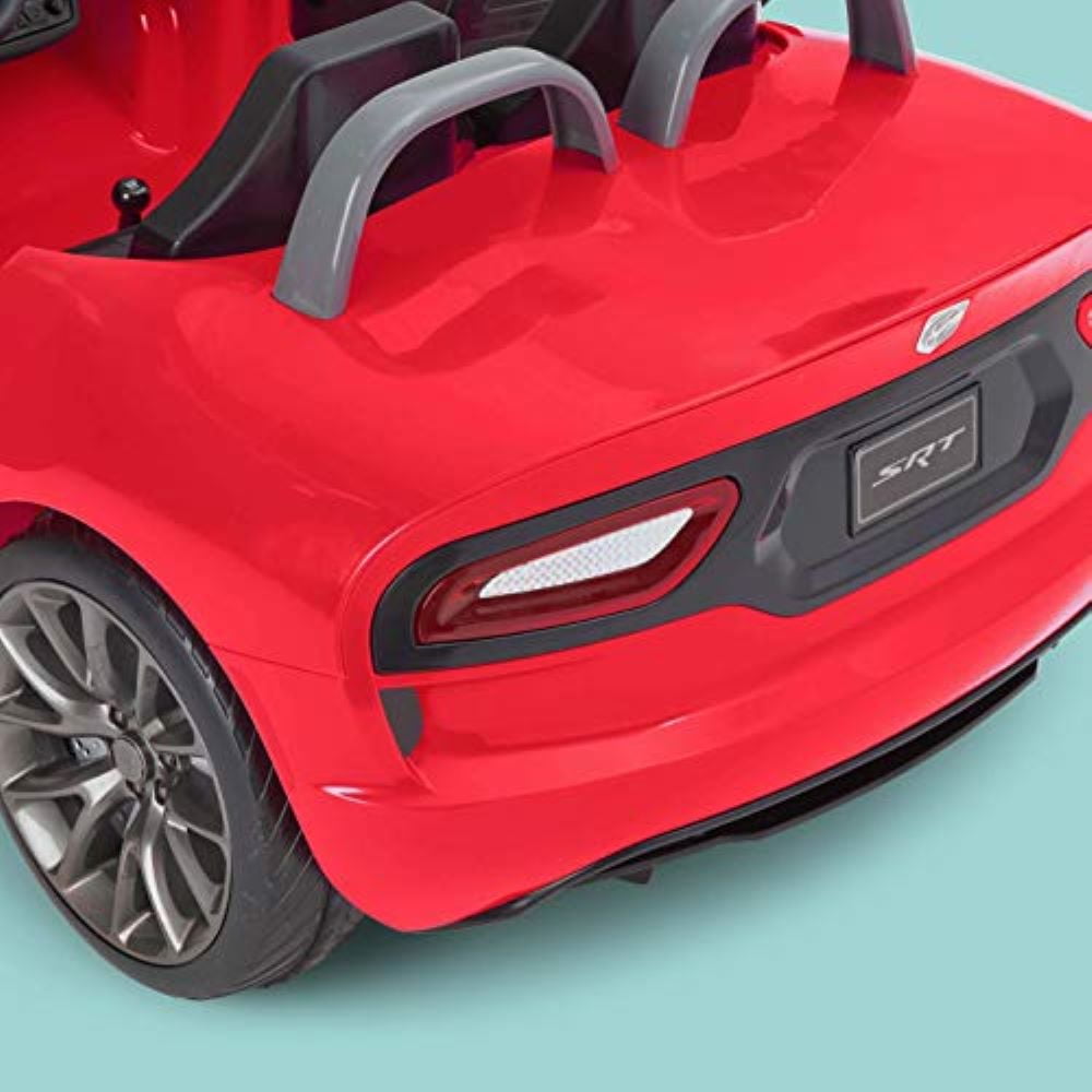 Kid Trax Dodge Viper SRT Convertible Toddler Ride On Toy, Ages 3-7 Years Old, 12 Volts, Two Seater, With the new Kid Trax Viper 12-Volt Battery-Powered Ride-On, your children will feel like they are driving a real car. This ride-on has tons of features just like the real SRT Viper, including realistic engine sounds. There is also a FM radio with MP3 player input and working LED lights with this SRT Viper ride-on. The vehicle can easily drive on flat, smooth surfaces. It is also made of durable plastic but has rubber traction strips on the tires that provide extra traction and safety.