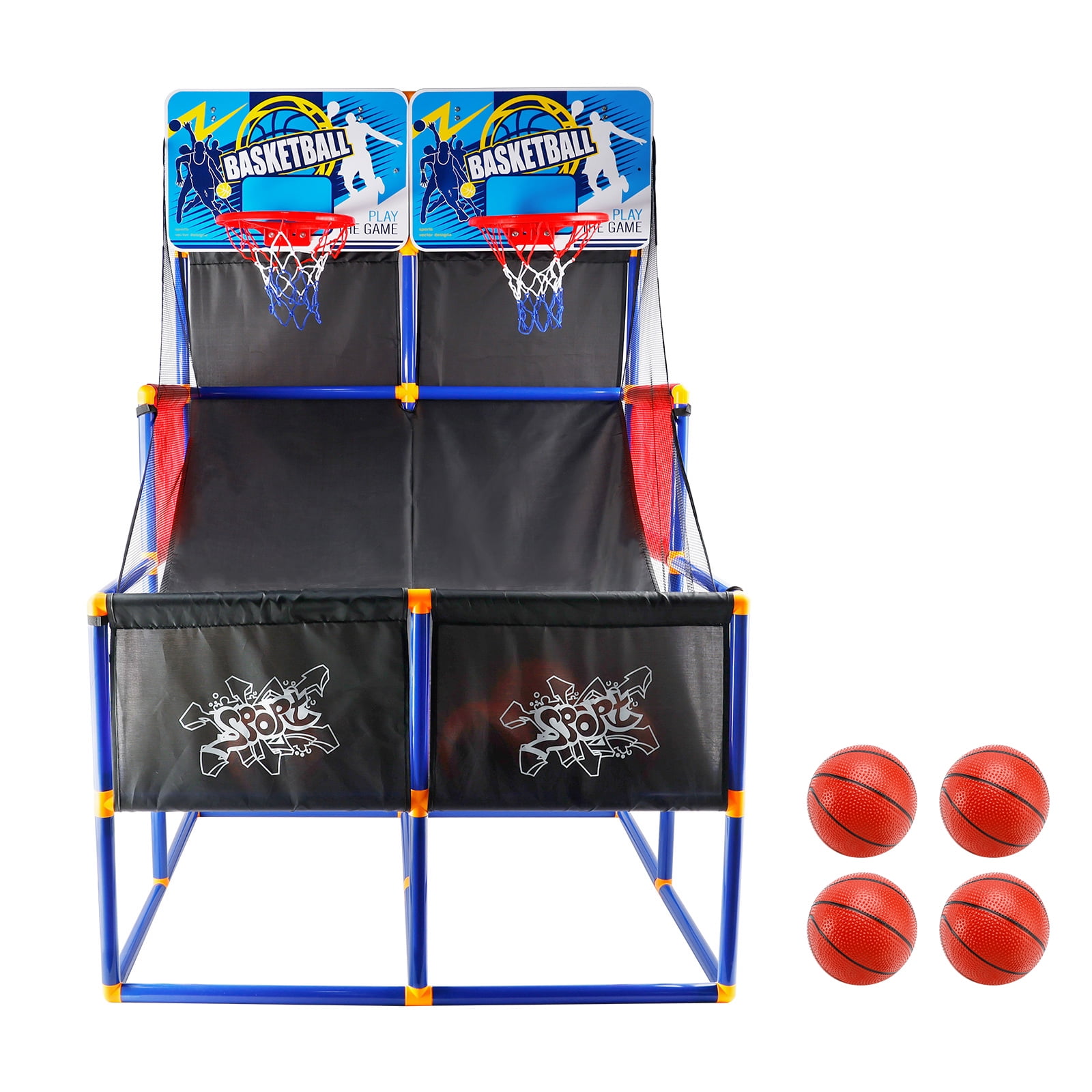 Kids Basketball Game, Basketball Arcade Game for 2 Players with 4 Balls & Inflation Pump, Indoor Outdoor Sport Play Basketball Toy Set for Home