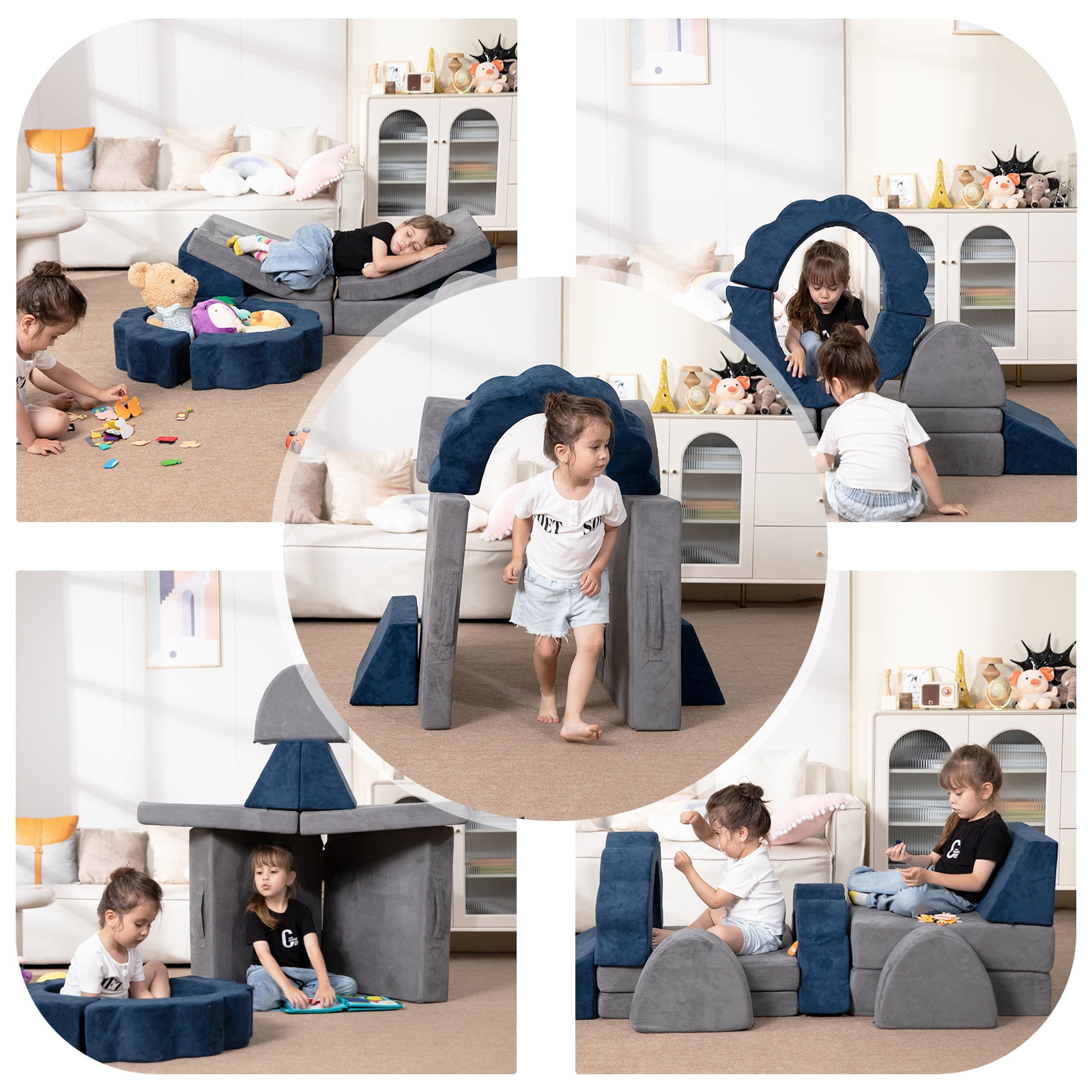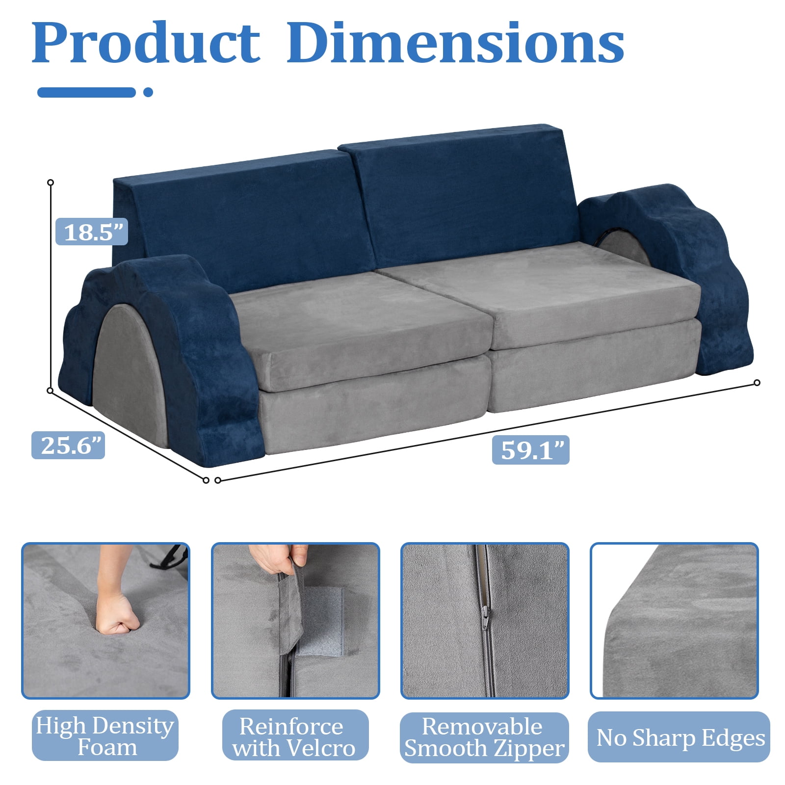 Kids Couch 10PCS, Foam Play Couch for Boys & Girls, Multifunctional Toddler Couch for Playroom, Grey & Blue
