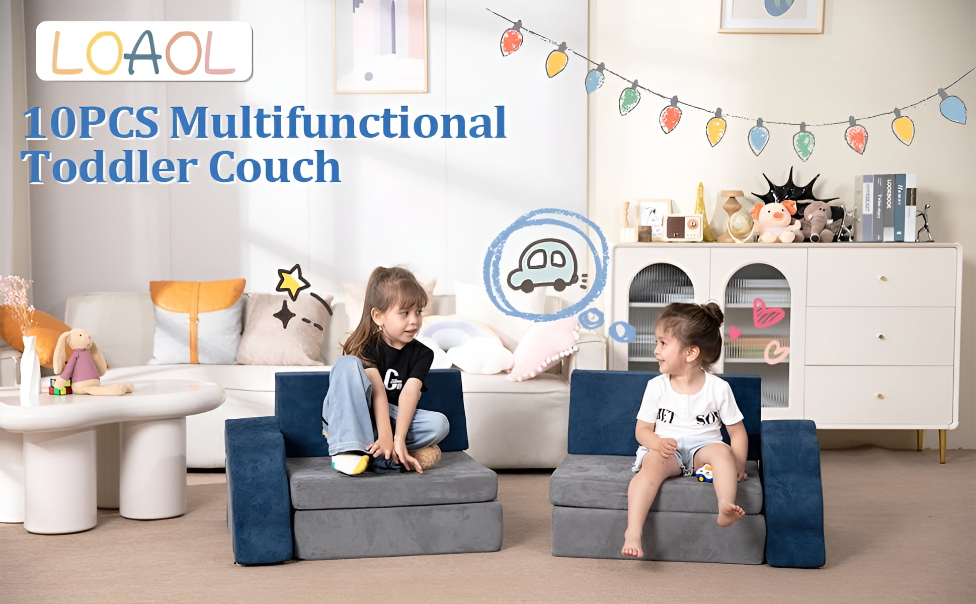 Are you still worried about your children falling or getting hurt while learning to walk or climb? LOAOL kids couch can solve this problem. This play couch is made of high density foam and soft suede, which can protect children while they practice walking or crawling. This modular foam kids couch is designed to combine the function of comfortable rest and provoking kids interests from building different models, such as reading corner, castles, car, ball pit, etc. It’s easy to keep kids happy, also create a warm atmosphere with a whole family. LOAOL dedicated to offering better and selective products to kids and family decor.