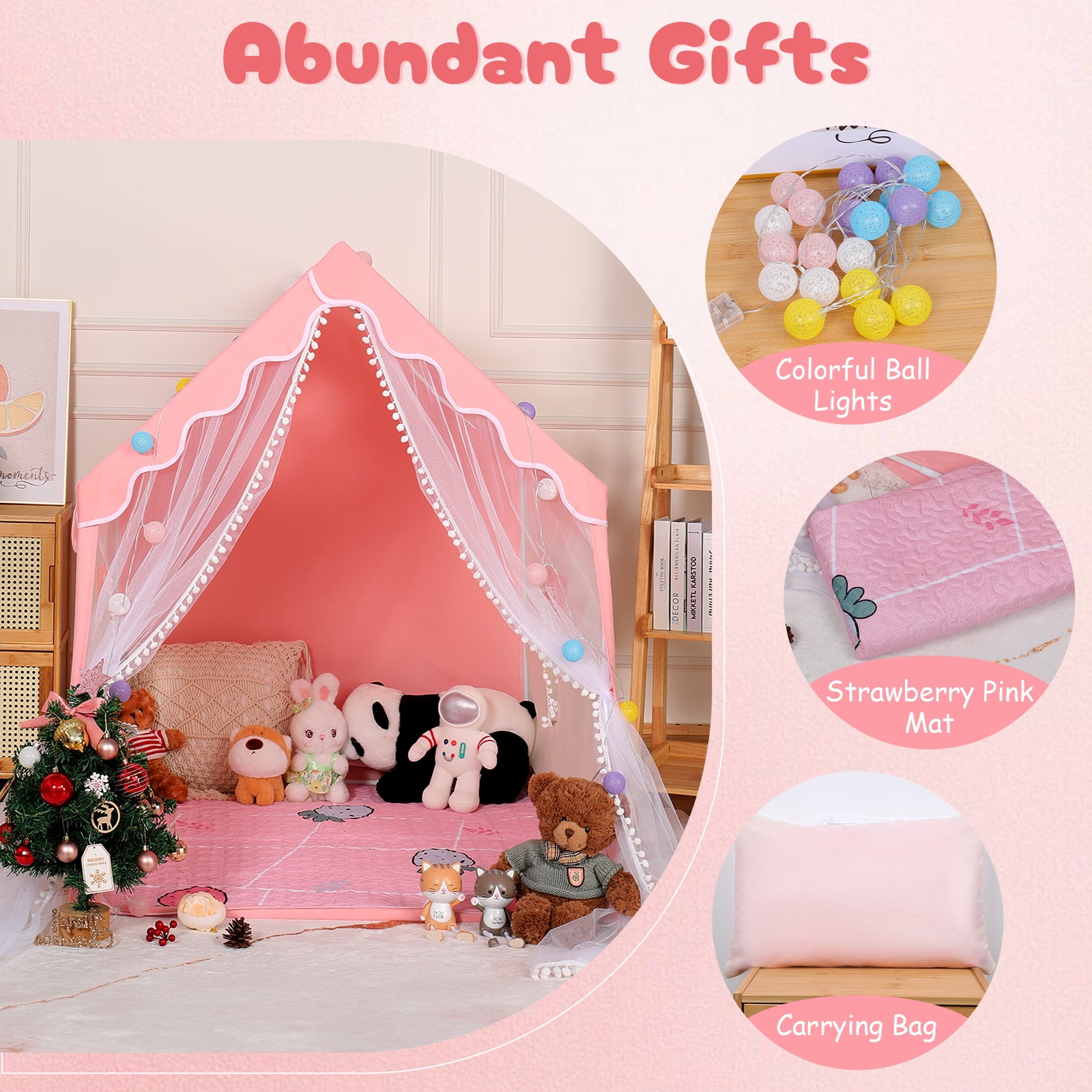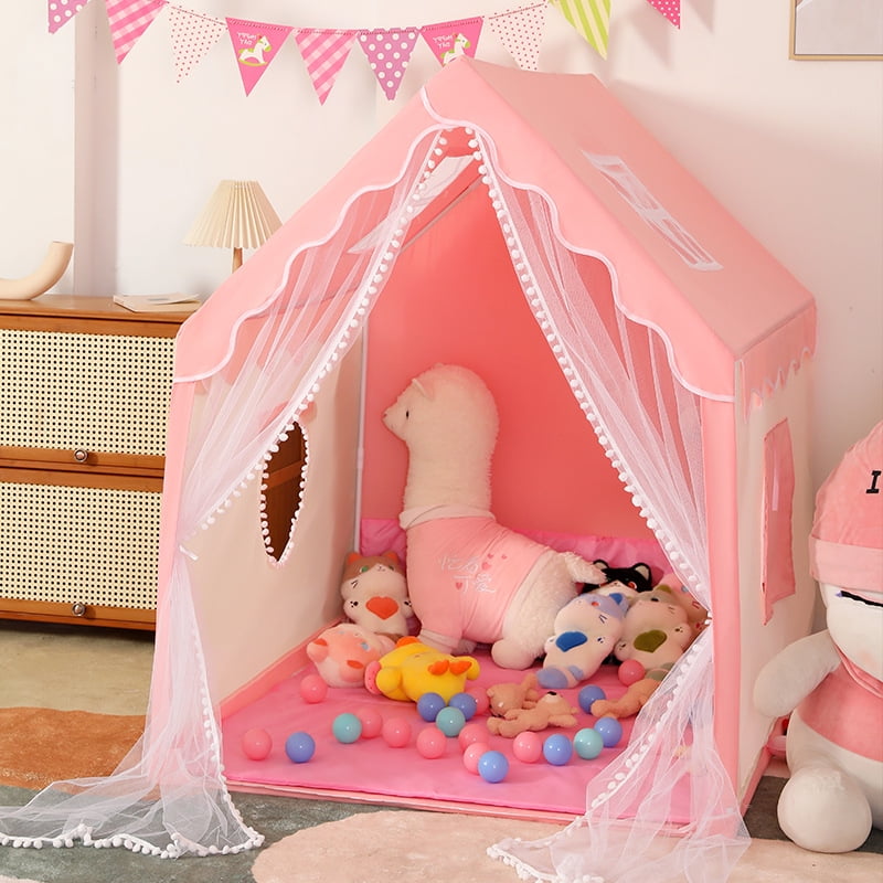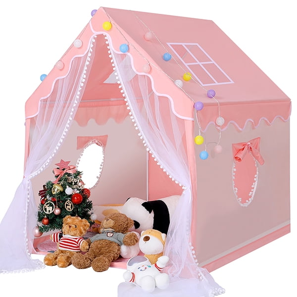 Kids Play Tent, Tent + Rug + Ball Lights Set, Girls Princess Large Playhouse Toy with Windows for Indoor Outdoor Imaginative Games