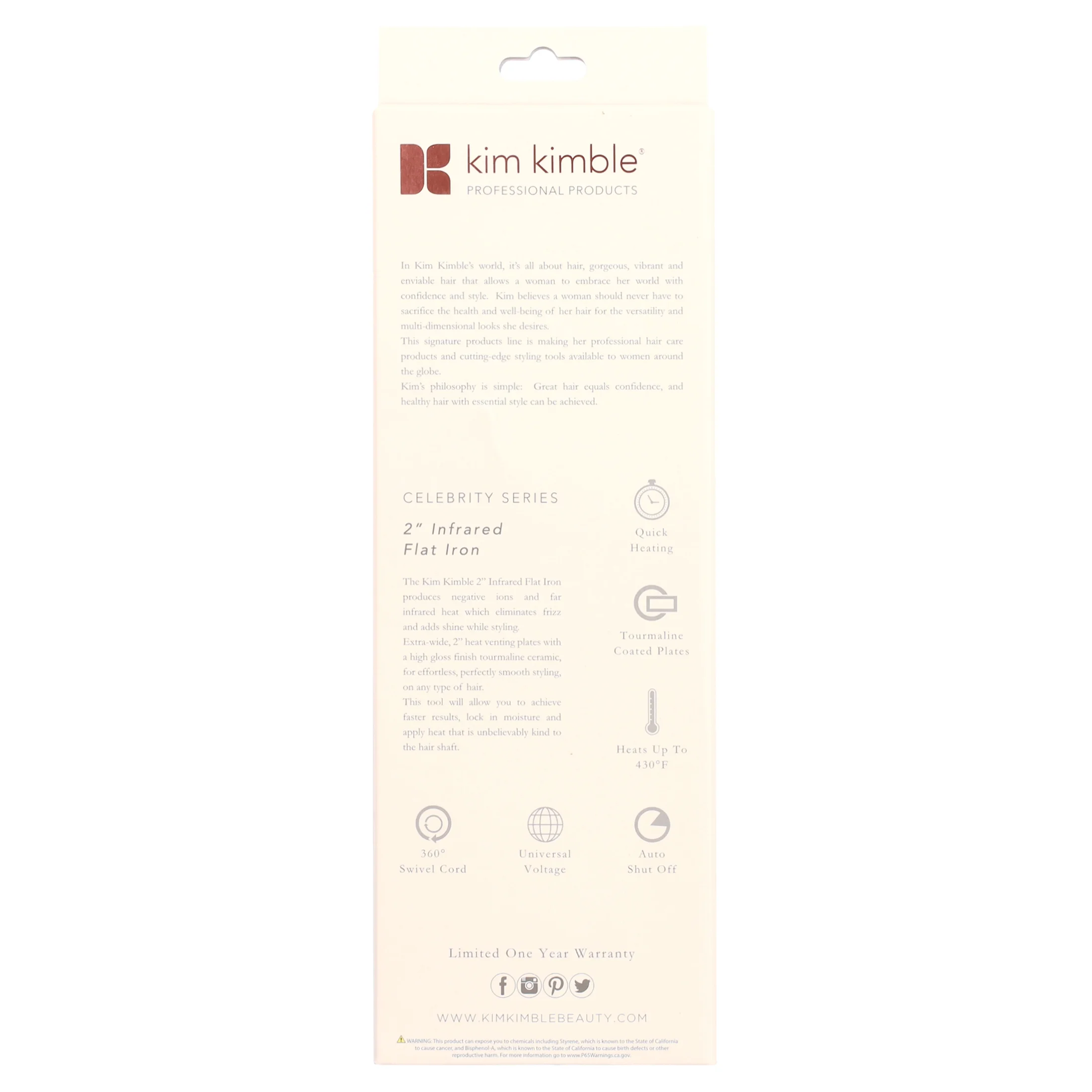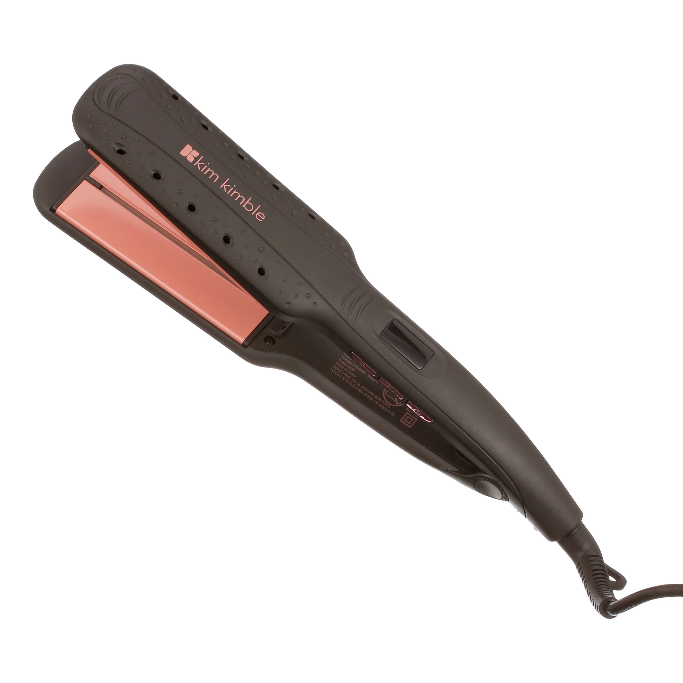 The Kim Kimble 2″ Infrared Flat Iron produces negative ions and far-infrared heat which eliminates frizz and adds shine while styling. Extra-wide, 2″ heat venting plates with a high gloss finish tourmaline ceramic, for effortless, perfectly smooth styling, on any type of hair. This tool will allow you to achieve faster results, lock in moisture, and apply heat that is unbelievably kind to the hair shaft.