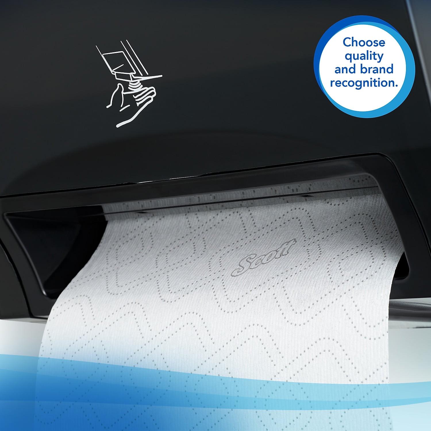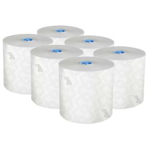 – 1,150’/Roll, 6 Scott Pro High-Capacity Hard Roll Towel Rolls/Case; 6,900’/Case; with Elevated Design and Absorbency Pockets; for Blue Core Dispensers; White. 1.75″ core size is compatible exclusively with Scott Pro Automatic Hard Roll Towel Dispenser.
