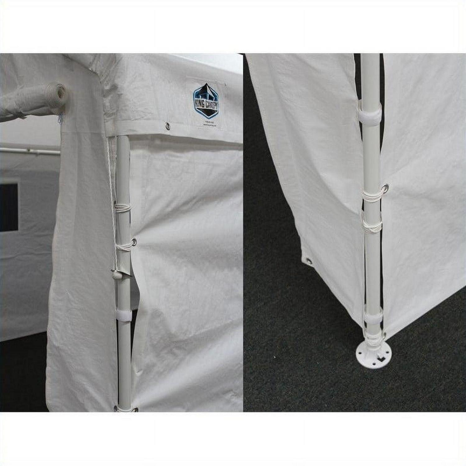 King Canopy side wall kits are the perfect accessory for any canopy. They are great for privacy, storage, or simply just for wind / shade protection. Fits the 10 ft. 8 in wide x 20 ft. long Canopy. Canopy Frame and Cover not included. Sidewall Kit accessory only. Includes two of the 20 ft. long sidewalls with six Clear Plastic Windows and two 10 ft. 8in. Wide Zippered End walls with Roll Up Doors.