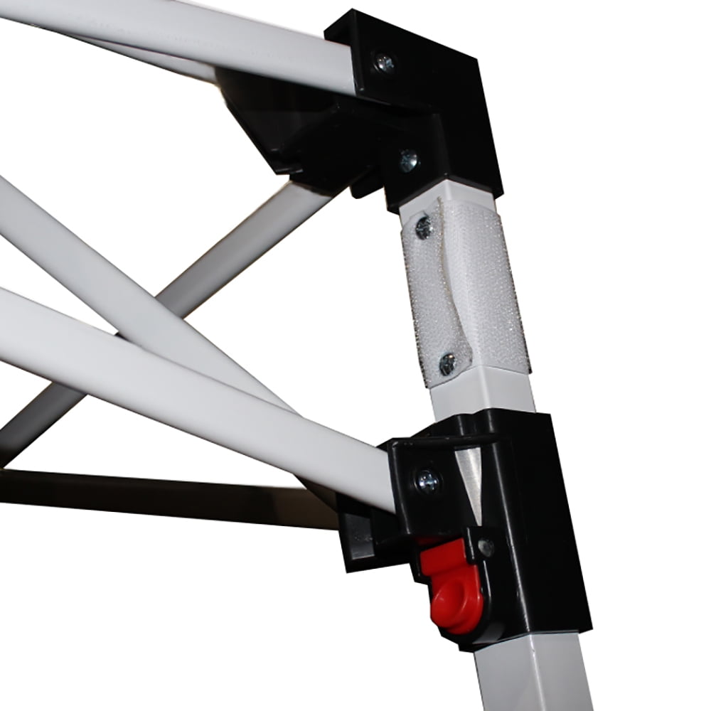 Make your next tailgate, campout, or backyard party more enjoyable with the King canopy Instant Slant Leg Canopy. Value King Slant Leg sets up in minutes with no tools required. Just take the fully assembled frame out of the bag, attach the cover, pull open and snap into position, extend legs and you are done. Breakdown is just as easy with steel frame and thumb buttons to avoid pinched fingers. Slant Leg design provides extra stability. 10-foot by 10-foot footprint and 8-foot by 8-foot cover. White 210D Polyester cover provides an 8-foot 4-inch maximum center height. Includes Carry Bag with extra-long straps allowing for easy transport. 10ft wide x 10ft long(bottom) 8ft wide x 8ft long(top)by 5ft 10in side height by 8ft 4in center peak height.
