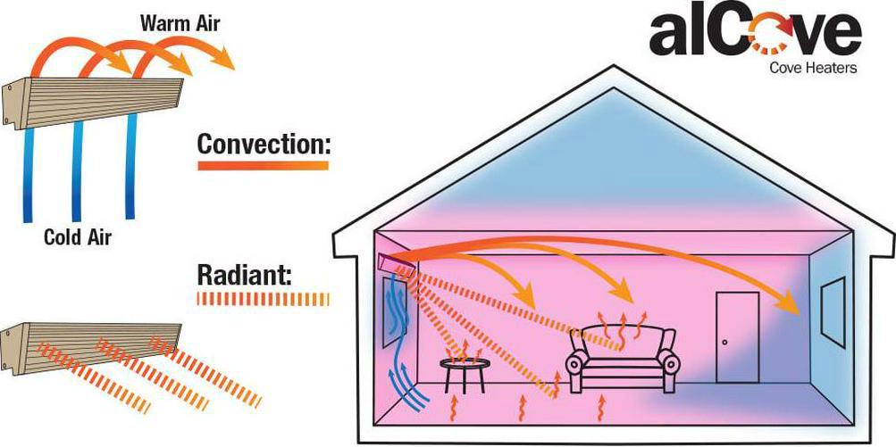 The alCove or KCV Series cove heater provides warmth from above. A space-saving radiant heater that also produces convection heat by heating the air similar to a baseboard. By combining the quick comfort of radiant heat along with the stained warmth of convection heat, warm air is uniformly dispersed throughout the room. The cove heater is mounted near the ceiling, eliminating furniture placement problems. Surface temperatures are lower than baseboard or fan heaters, making a pleasant form of heat similar to older ceiling cable heating systems. With no moving parts this heater is quiet and maintenance free. Typical es are day care centers, assisted living hoing, hoing developments, laundry rooms, bathrooms, bedrooms.