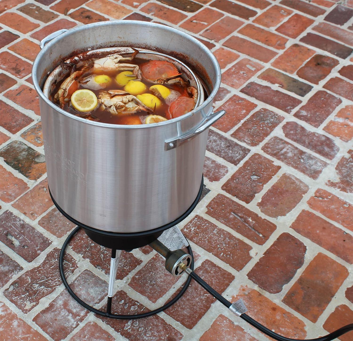 With an impressive 54,000 BTU, our high pressure cast burner ensures quick and efficient heating, giving you the flame control and speed you need. From boiling, frying, up to simmering, this cast burner is your trusty ally for achieving culinary perfection. Cook varieties of food in a King Kooker cooking pot up to the size of 32 qt. Cooking pots are sold separately.