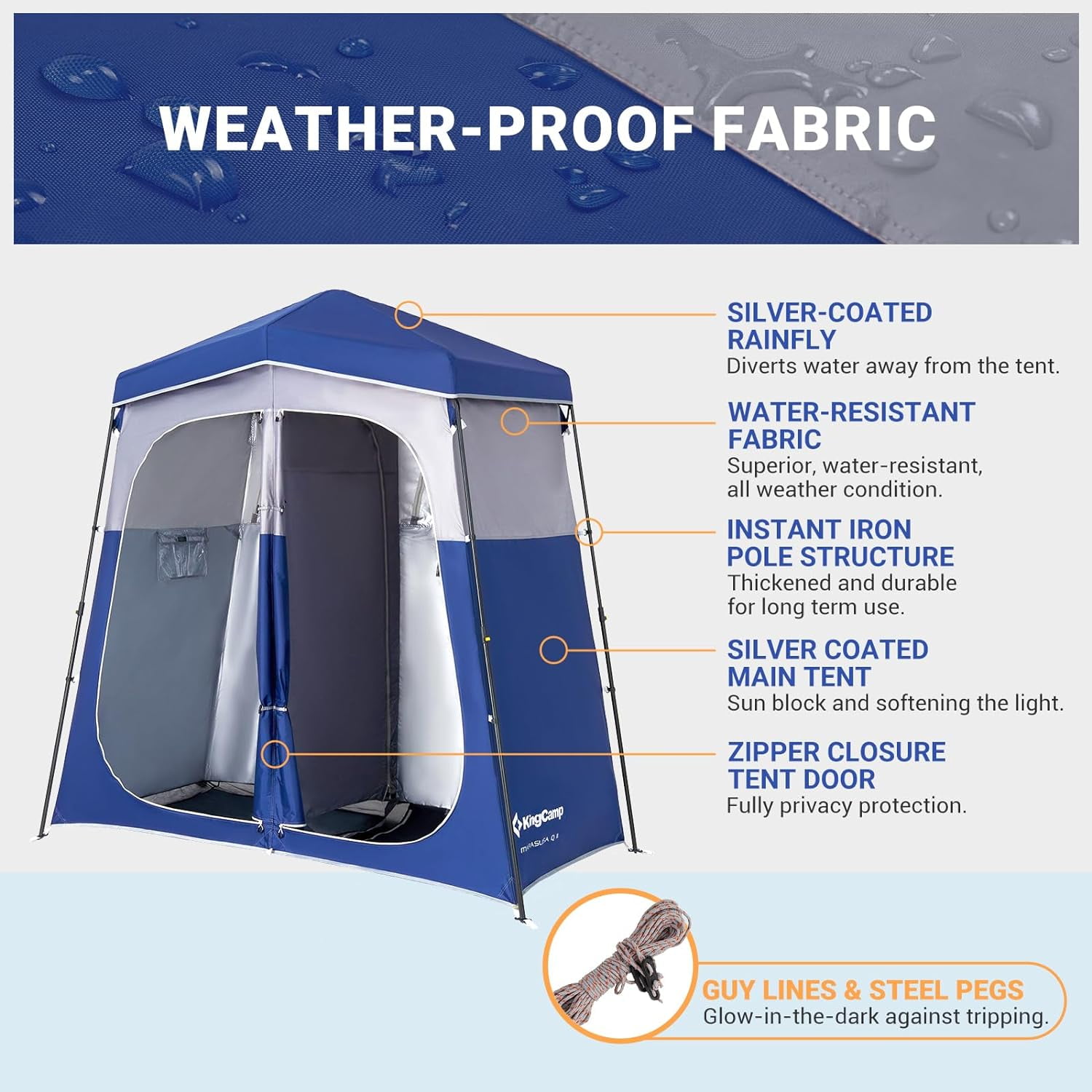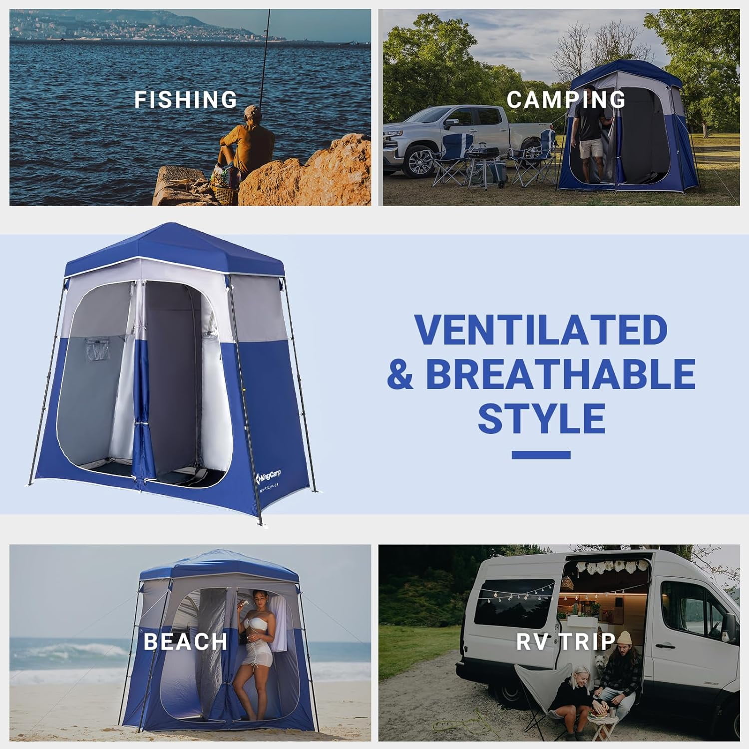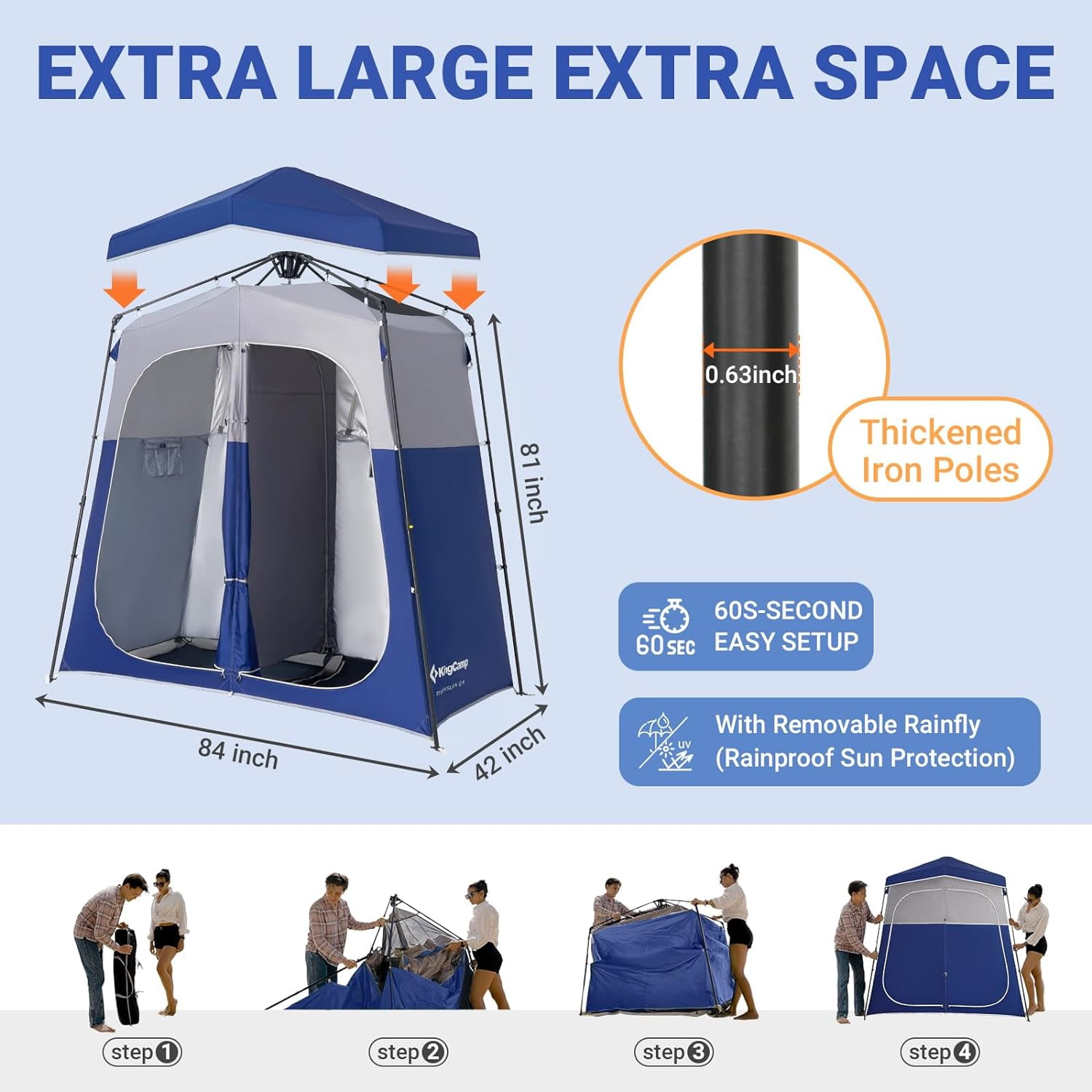 KingCamp 2 Rooms Camping Shower Tent, Oversize Privacy Tent with Carry Bag, Outdoor Weatherproof Portable Shelter, Instant Set Up for Camping Dressing Toilet Bathroom