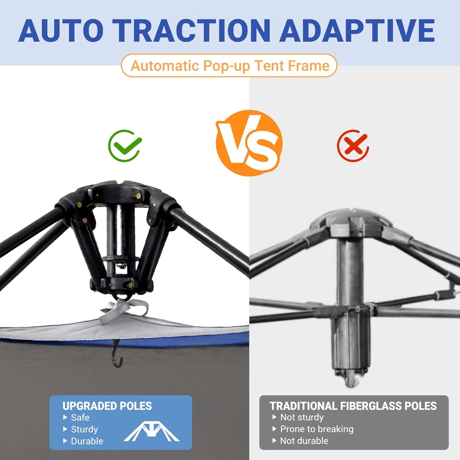 HIGHLIGHTS 【Ultimate Comfort】Indulge in the ultimate comfort with our shower tent’s generous 81-inch central height and spacious 84in x 42in area. The roomy interior offers ample space for all your needs, making it perfect for family travel or camping with friends. 【60s Instant Setup】Experience the ultimate convenience with our shower tent’s 60-second instant setup. Pre-attached poles allow for swift assembly, simply unfold and extend the leg poles until they audibly click into place. No more fiddling with complex instructions or wasting time on setup. 【Waterproof Construction】Our shower tent is crafted from heavy-duty iron and PU 1000mm waterproof oxford fabric, ensuring durability and resistance to the elements. A removable rainfly safeguards against sun and rain, while strategically placed windows and roof provide excellent ventilation, keeping you comfortable and dry in any weather. 【Privacy Protection】The completely opaque fabric ensures optimal privacy.The divider design includes a partition in the middle, making it ideal for family travel, accommodating two people simultaneously while safeguarding. 【Versatile Design】Transform our shower tent into a changing room, camp bathroom, shower pod, portable instant toilet tent, or camping privacy tent. With inside pockets for small items, a rope for hanging clothes or towels, and a sturdy hook for your solar shower head, it’s the perfect companion for all your outdoor adventures. The adjustable zipper closure floor mat adds extra flexibility to suit your needs, making it a truly versatile and functional outdoor essential. Product Specification Unfolded size:83.9L x 41.7W x 80.7H inches Package size:43.7L x 7.1W x 7.1H inches Weights:16.1 lbs Fabric:150D Oxford cloth, pu1000mm silver coated reverse Customer Service::The shower tent with a 6-month warranty, If any part of the tent is lost or damaged, please contact us promptly, our team will try our best to help you. WHAT YOU GET guy line * 4 steel peg * 10 storge bag * 1 portable tent * 1 rainfly safeguarding * 1