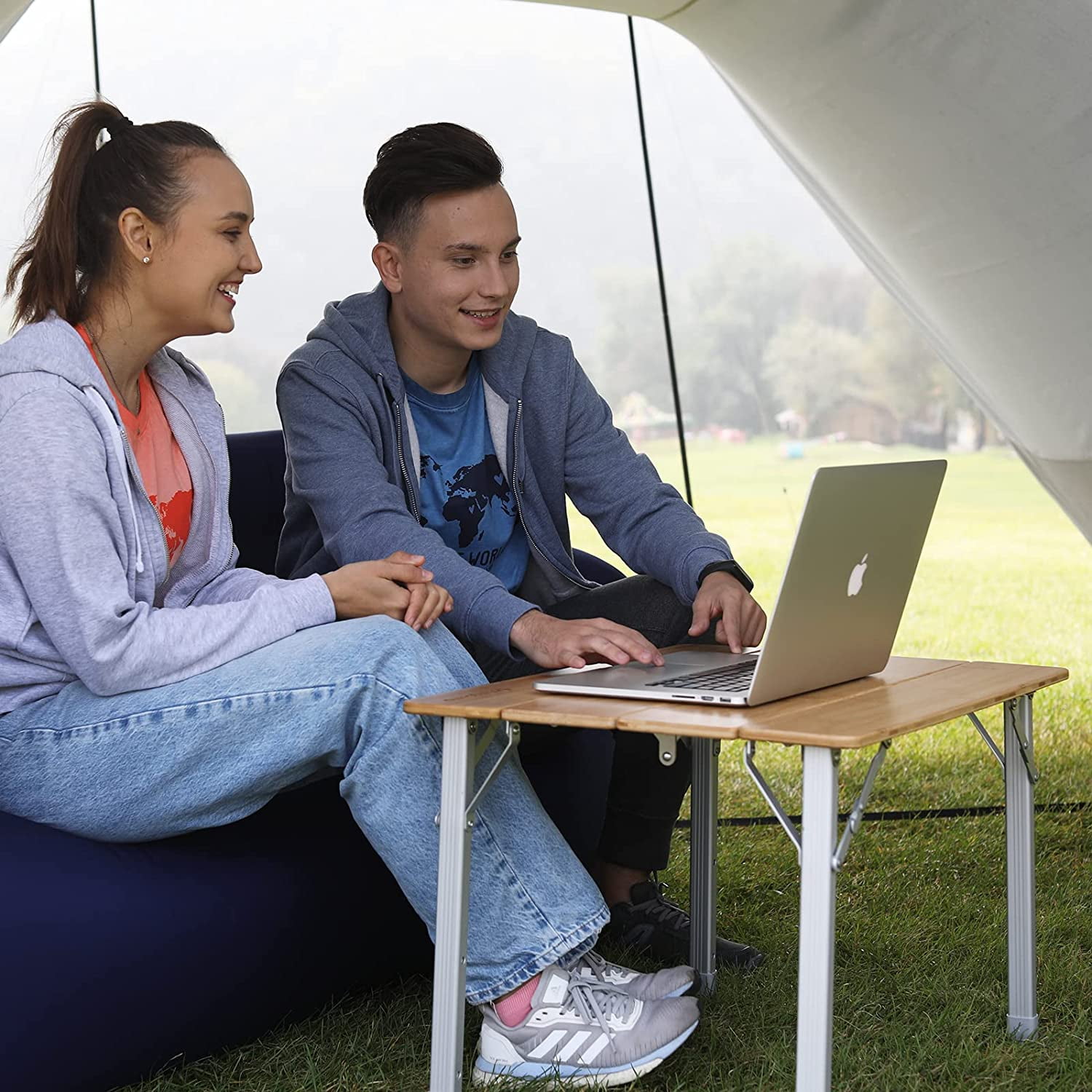 【THREE POINT ADJUSTABLE HEIGHT】This camp table can be adjusted to three fixed heights 17.7in, 20.5in and 25.6in according to your different needs. The end of each leg has a adjustment knob for easy leveling. This design greatly facilitates your outdoor life in various scenes. 【THICK PURE NATURE BAMBOO BOARD】Bamboo desktop area 25.6*19.6in. This bamboo folding table uses natural bamboo wood with bamboo texture and touched smoothly. The bamboo board is environmental and pretty durable, with waterproof coating and scratch resistance, anti-aging uv treatment and assure it a longer service life. 【ULTRALIGHT ALUMINUM FRAME】This adjustable height camping table wights only 9.26 lbs. Aluminum brackets are less prone to rust than normal steel. And the weight of aluminum is lighter than steel, the aluminum frame is perfect for your outdoor activities. 【176lbs LARGE LOAD-BEARING】This folding camping table is suitable for 1-2 person use. The thickness of the bamboo board is 0.5in. This camping table with a square aluminum tube design increasing the weight capacity than the round one. And the triangular structure of the legs strengths the stability of the table. 【4-FOLD STRUCTURE&NO TOOLS NEEDED INSTALLATION】 This camping table is super easy to install in seconds without any tools and the camp table adopts a collapsible design, the bamboo tabletop and aluminum bracket can be folded in seconds to save space and be carried like a suitcase on your trip, and it also fits most car trunks to meet your camping needs.