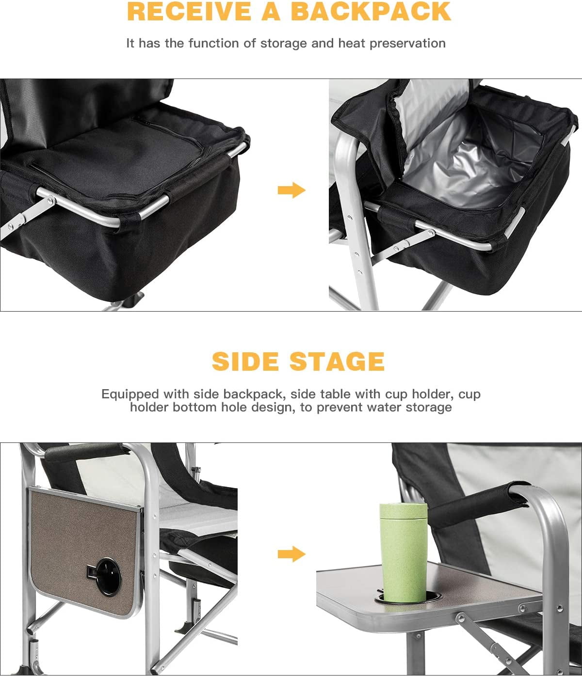 KingCamp Heavy Duty Director Chair Folding Oversize Camping Chairs with Larege Cooler Bag & Side Table for Adults, Support 330+LBS Black