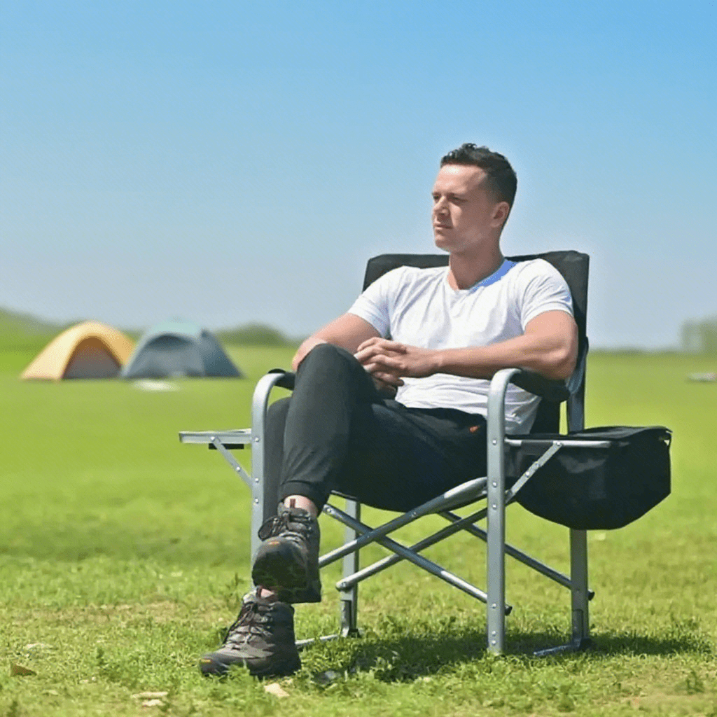 KingCamp Folding Camp Chairs Suit for Camping, Hiking, Travel, Picnic and More This camping folding chair is easy to carry, folding in seconds. The outdoor folding chair is ideal for most outdoor and indoor activities. Extra large camping chair is suitable for adults heavy duty. Rugged steel frame make the chair support up to 350 lbs.The double-seam 600D Oxford Cloth has great strength, durability, and breathability. Whether you are camping or traveling, a directors chair with side table and the large capacity insulation bag design will bring you more convenienc. Enjoy time with your family and friends ! The chair is 14.8 lbs and after folded the size only has 36.6 × 10.6 × 7.1 inches which make it portable and light enough to be carried like a small luggage on a trip, fits in most car trunks, satisfying your camping needs. The moisture-wicking fabric of this chair is soft and breathable. Support cross rivet connection and iron flat tubes enhance the bearing capacity; at the same time solve the problem of the structure stability fundamentally. With a large cooler bag (14.2 × 9.8 × 5.5 inches), some ice drinks and food can be stored in it to keep fresh. Our chair is multi-purpose which is perfect to be used indoor, or bring it to outdoor activities for picnic, camping, beach, patio parties, fishing, and more. CUSTOMER GUARANTEE:This chair comes with 12-monthes warranty, and a 100% satisfaction guarantee. If you have any questions, please contact us directly.