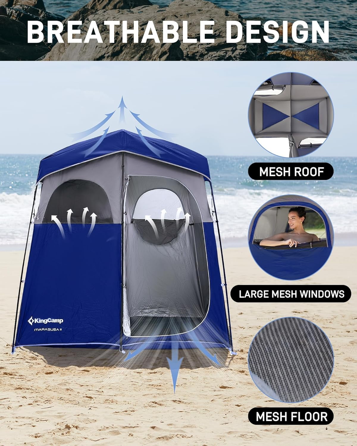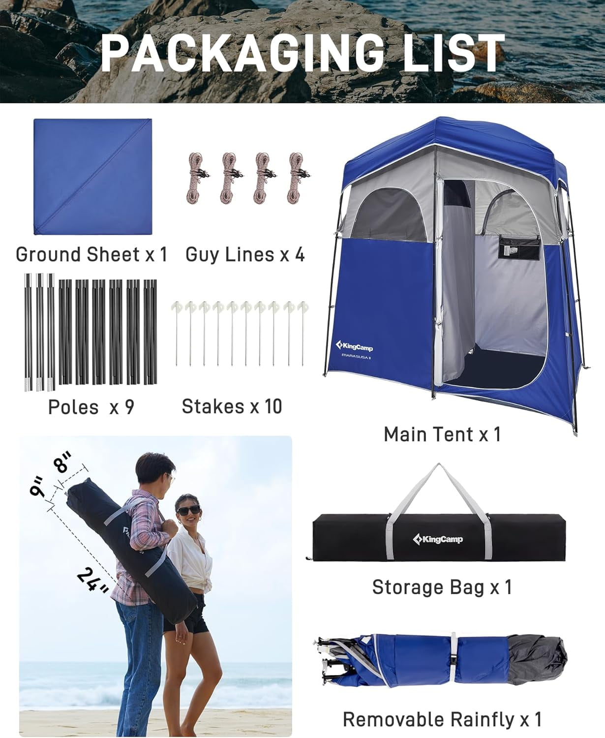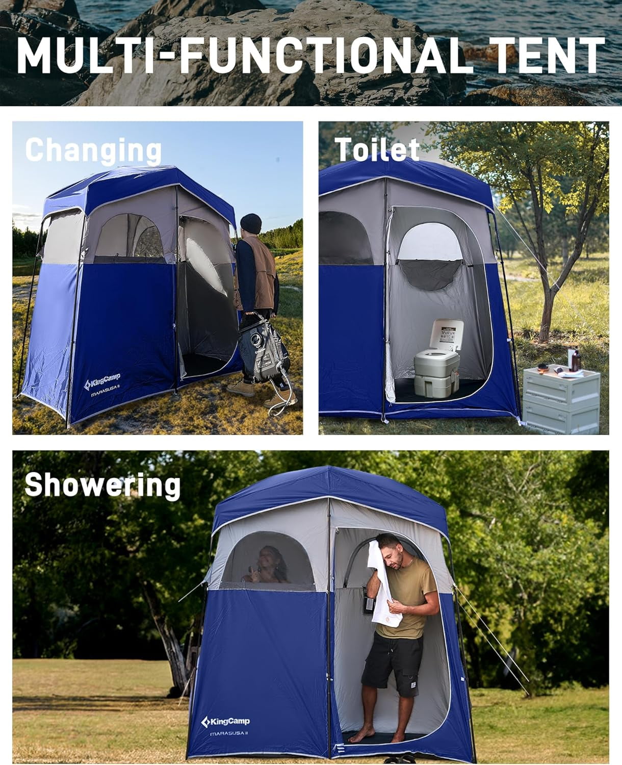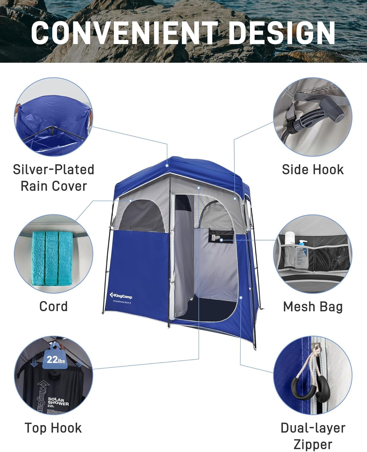 KingCamp 2 Room Shower Tent, Portable Camping Bathroom Tent with 5 Gallon Solar Heated Bag, Outdoor Changing Tent, Oversize Space Camping Privacy Shelter for Outdoor Camping, Hiking
