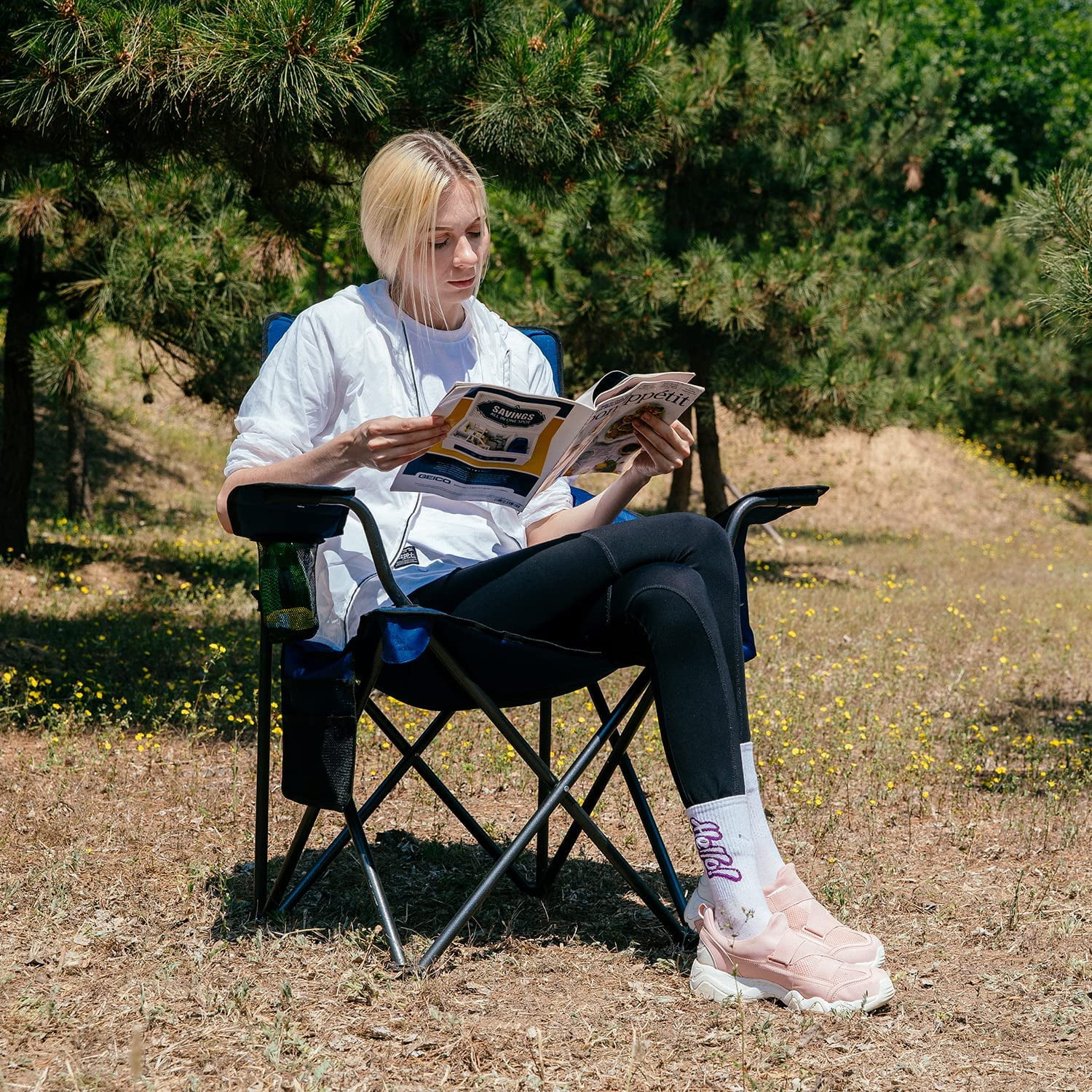 CONVENIENT: Supports 300 lbs. Seat height 16.9″. Width 38.2″. These heavy duty camping chairs are large enough for big and tall people. Padded seat, back support armrest, provides special comfort. With cup holder and cooler, relax with drinks and snacks. Side storage pockets for small stuffs. 2 packs take your family and enjoy leisure time together. PORTABLE: Oversized camping chair with the full back design gives you a better seat experience. Lightweight steel tube material and weighs only 7.2 lbs one chair. Making this outdoor portable camping chair easy to carry. Allowing you to immediately sit and enjoy a camp fire, outdoor festival, sporting event, lawn, patio, camping or tailgating. NO TOOLS NEEDED! Folding compact camping chair is easy to set up & fold in seconds and You’re ready to go! Packed Size 36.6″×7.4″×7.4″ one chair, easy to carry with carry bag. It’s a long lasting camping folding chairs to enjoy outdoors. This padded folding chair is suitable for both kids and adults STUDY: Camping oversized chairs made of 600D oxford fabric. Whether indoors or in the backyard, it can be a good helper for relaxation. Thickened steel poles & Rubber feet grip, offer exceptional stability, make the camping folding chair more secure and slip-resistant VERSATILITY: Take this compact camping chairs with you anywhere, beach, park, picnic, camping, hiking, fishing, sporting etc. IDEAL CHOICE & DECENT GIFT for backpackers, hikers, concertgoers, campers and anyone looking for comfort without the bulk. Any problem please feel free to contact us
