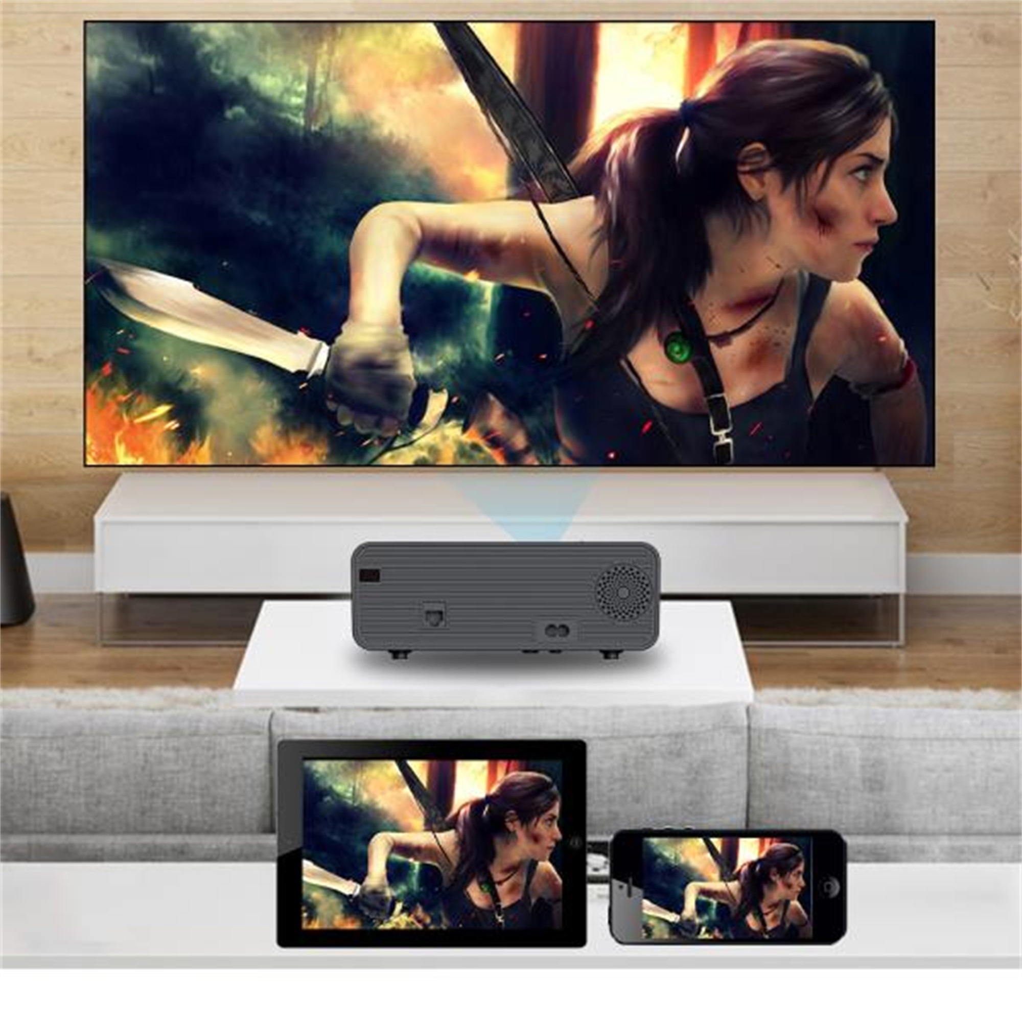 Specifications: Color: Black / White 4 Inch LCD TFT Display Material: ABS Voltage: 110V-240V 50-60Hz Power: 45W Resolution: 800x480P / 720P / 1080P Projection Screen Size: 30-120 Inches Remote Control Power Supply: 2x AAA battery (not included) 3D: Support Red and Blue 3D Contrast: 3000:1 Speaker: Built-in HI-FI Speaker Correction: Trapezoid Lamp Life and Type: 50000 Hours / LED 24W LED Luminous Efficiency: ~90% Interface: 1x HDMI, 1x AV, 2x USB, 1x SD, 1x VGA, 1x AUDIO OUT Maximum Supported Resolution: 1080P @ 60Hz. Aspect Ratio: Native 16:9, Compatible with 4:3. Display Type: Single LCD Panel Hybrid LED Projection mode: Front and Rear, Support Ceiling or MINI Tripod. Throwing Ratio: 1.38:1 Projection Distance: 1.2~5.5m Best Screen Size / Distance: 60 inches ~ 80 inches / 2.2 ~ 2.6 meters Projection Mode Flip: Up & Down Keystone: Vertical: +/- 15 degrees OSD Menu Language: 24 Languages Features: With USB, AV, HDMI, VGA/SD interface All new formats support playback, with a maximum resolution of 1920 x 1080 With infrared remote control function; remote control of the projector at any position Supports 4:3 and 16:9 playback ratios; supports mobile hard drives up to 1T Package Includes: 1x HD Projector 1x Adapter 1x Remote Control 1x AV Cable 1x Screw 1x Manual