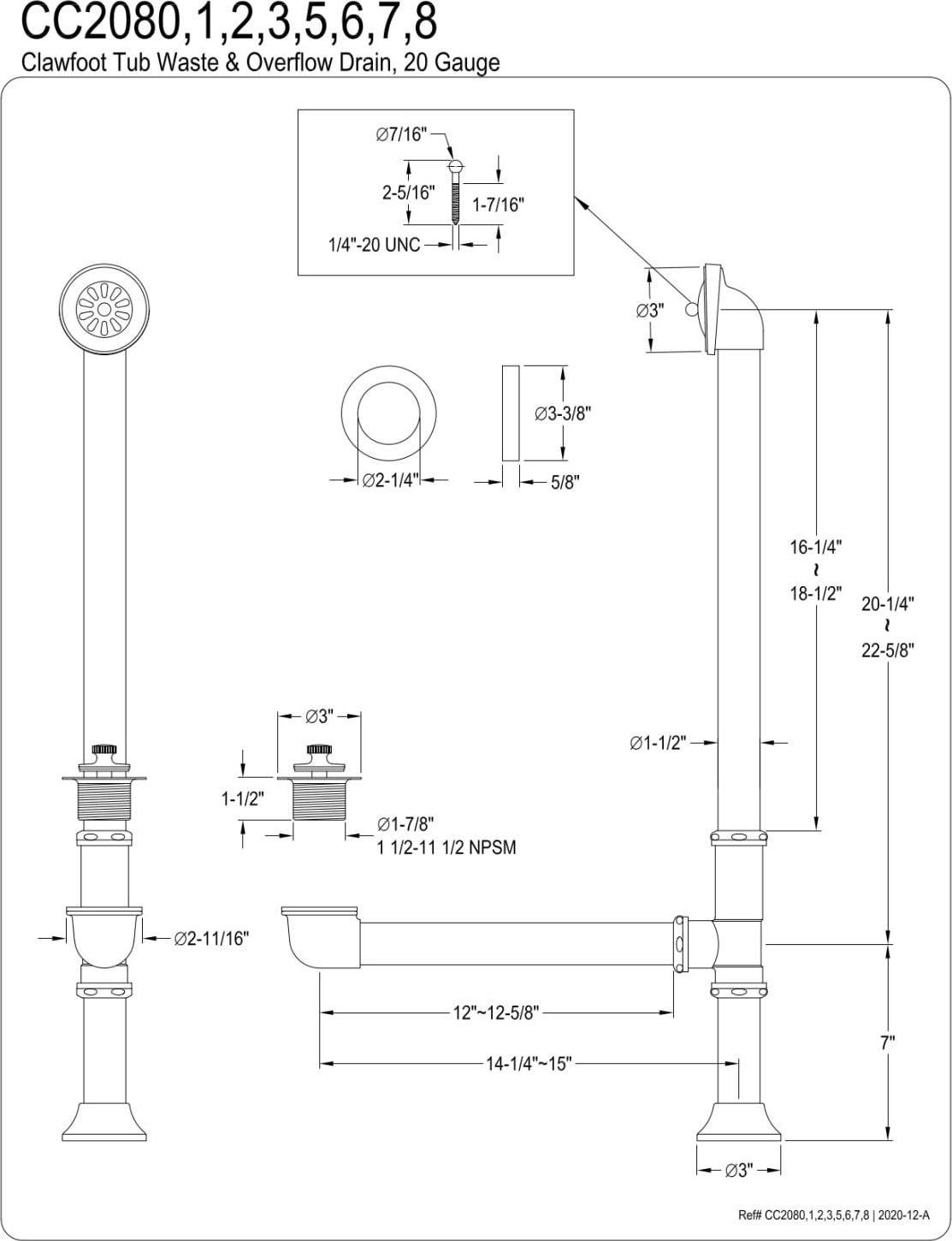 Kingston Brass CC2088 Clawfoot Tub Waste and Overflow Drain, Brushed Nickel