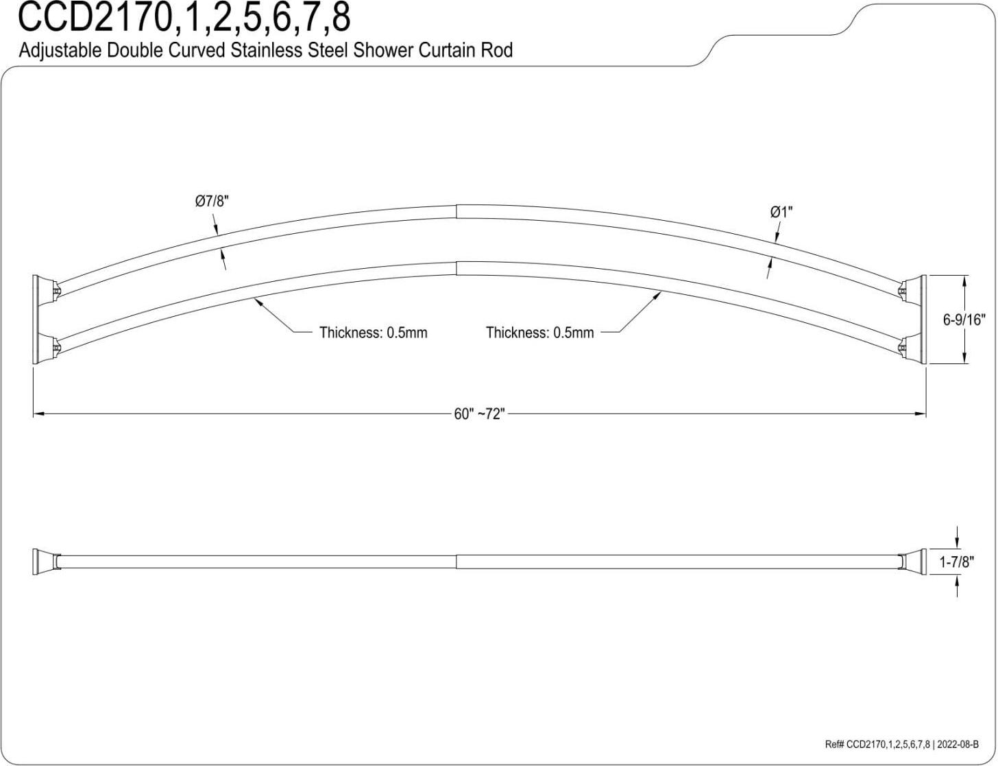 - 60″ – 72″ adjustable curved rod length