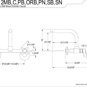 Kingston Brass Concord 8-Inch Adjustable Center Wall Mount Kitchen Faucet, Matte Black