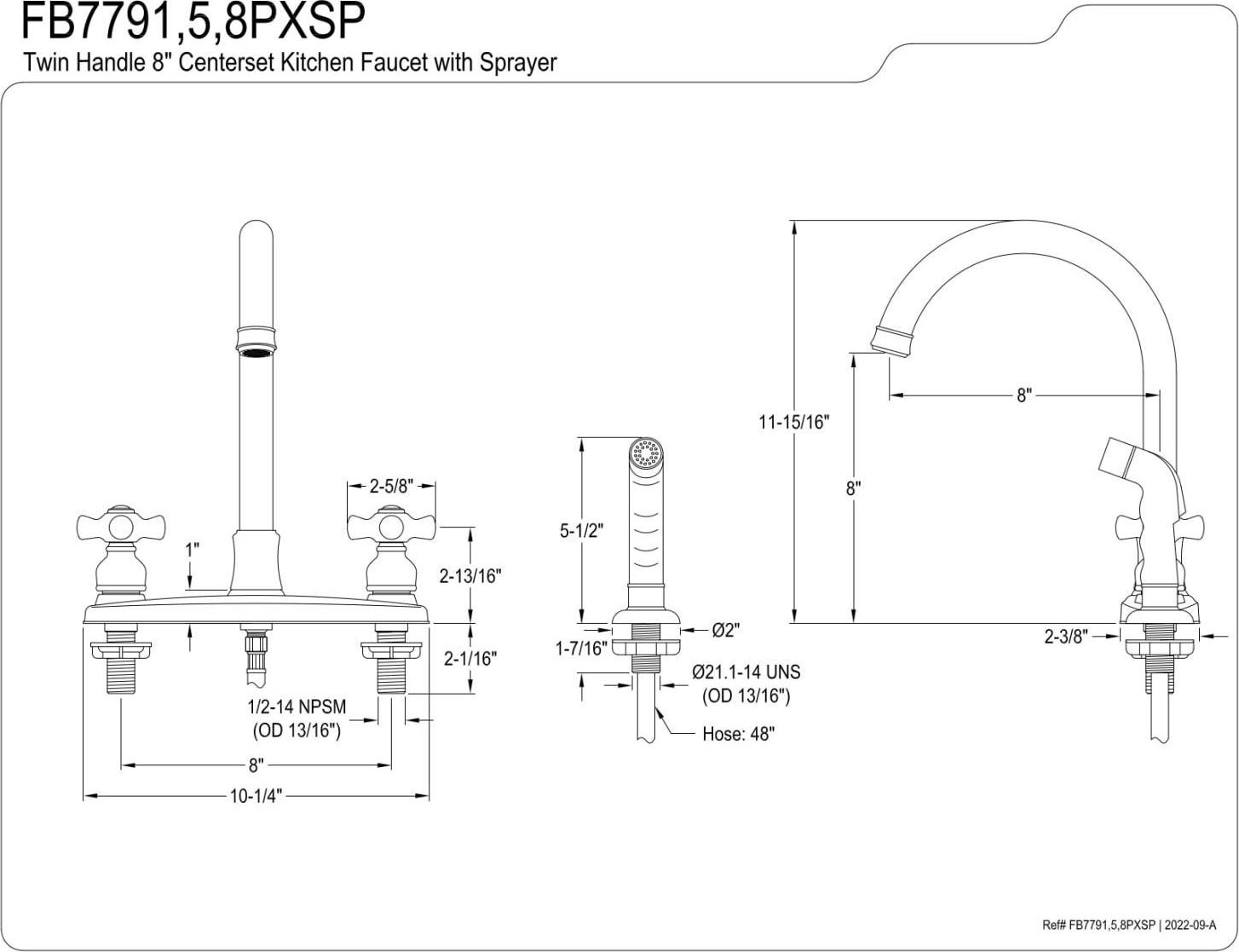 Kingston Brass FB7795PXSP Victorian 8 Centerset Kitchen Faucet with Sprayer, Oil Rubbed Bronze