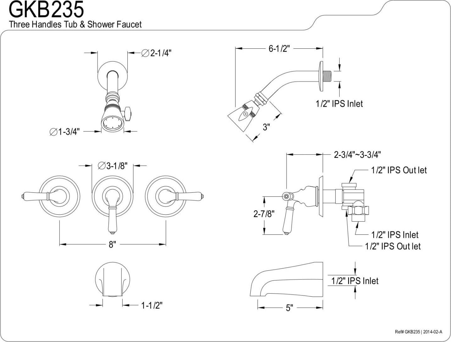 - 5″ tub spout