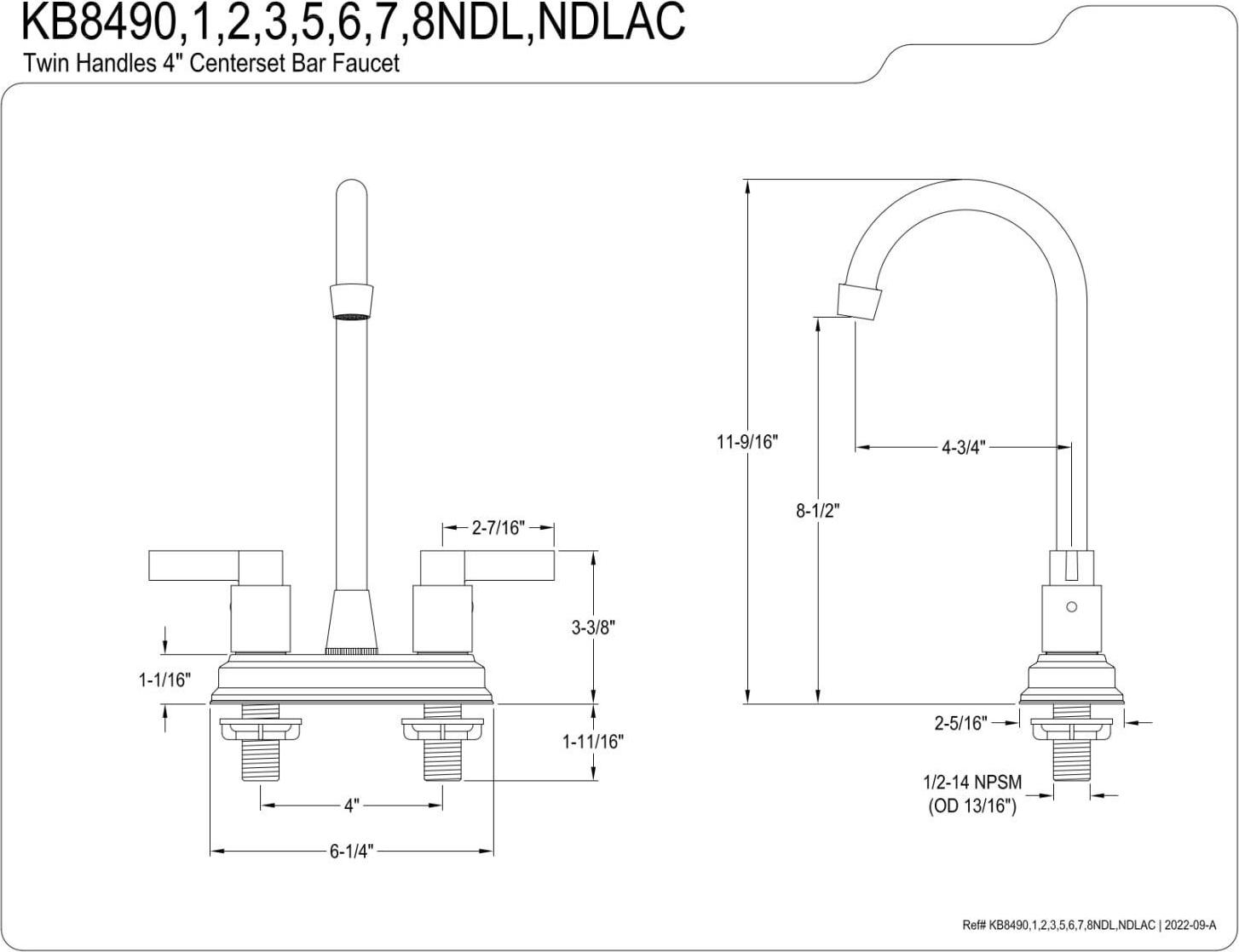 Kingston Brass KB849NDLAC NuvoFusion 4 Centerset Bar Faucet, Antique Copper