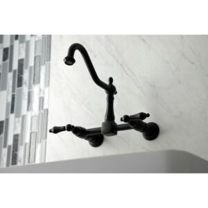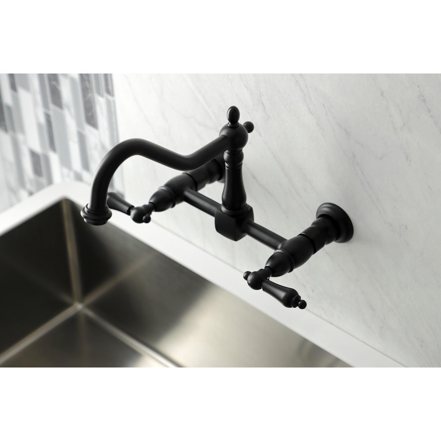 Kingston Brass KS1240AL Heritage Wall Mount Bridge Kitchen Faucet, Matte Black