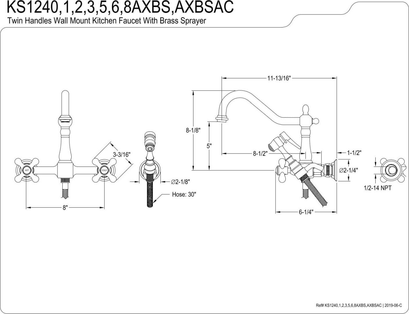 – 8-1/2″ Spout reach; 11-13/16″ from wall