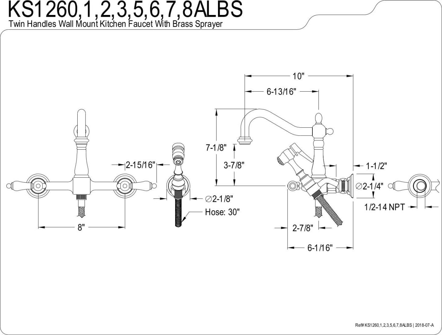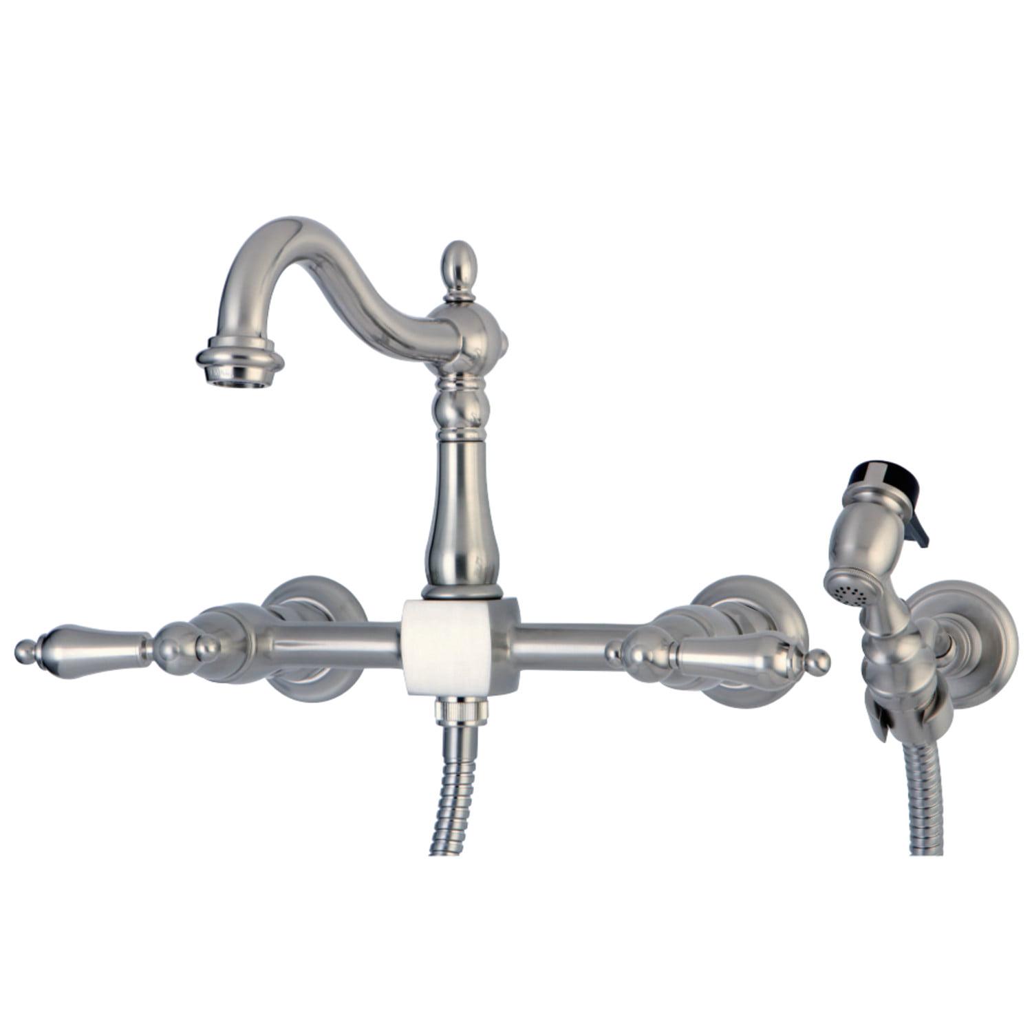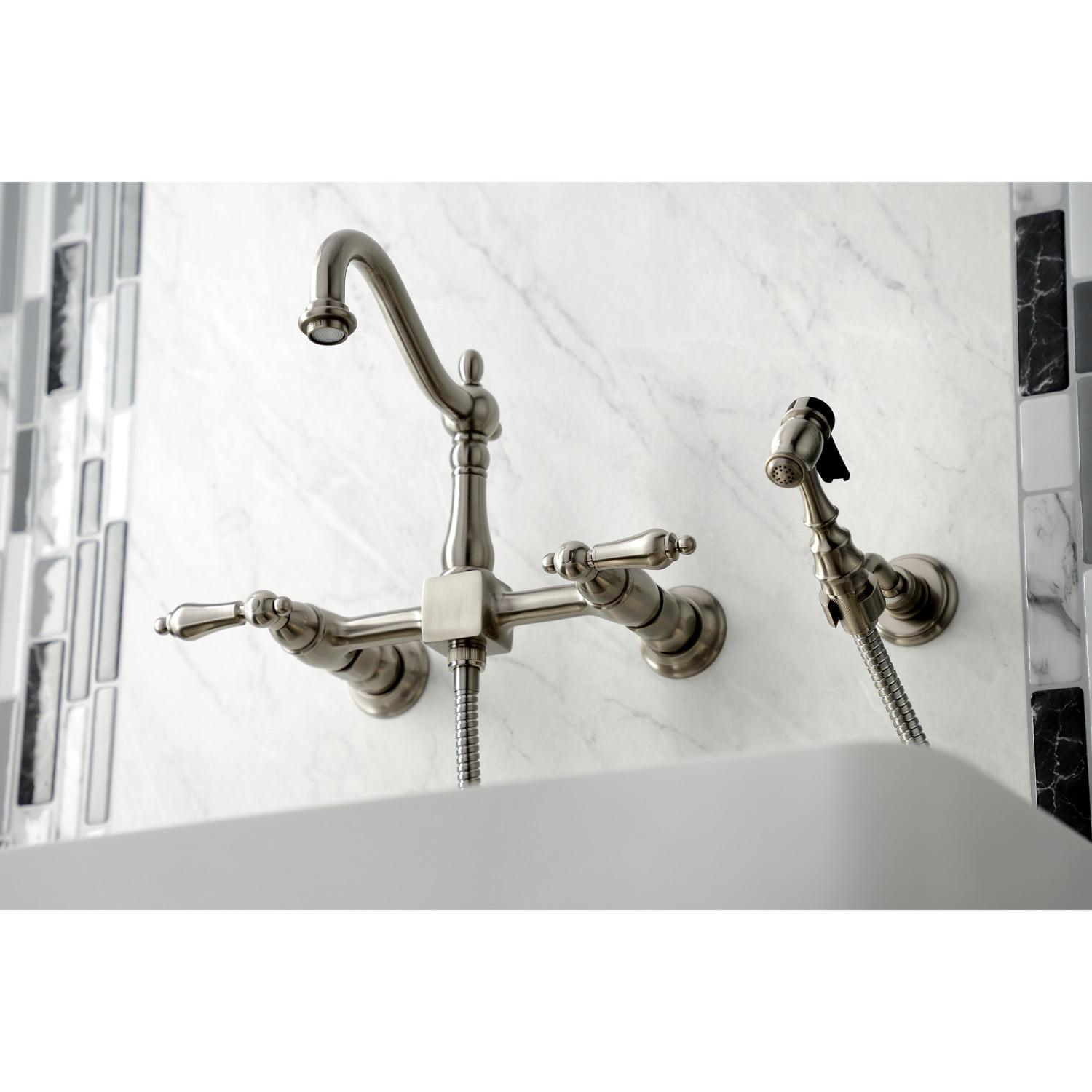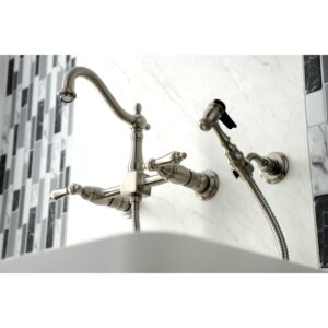 Kingston Brass KS1268ALBS Heritage Wall Mount Bridge Kitchen Faucet with Brass Sprayer, Brushed Nickel