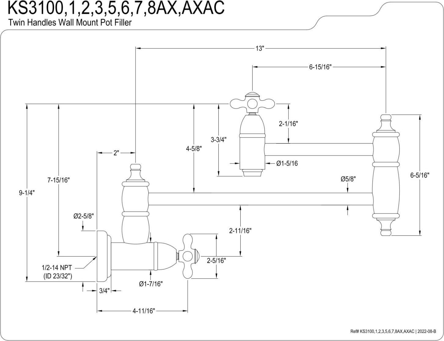 Kingston Brass KS3100AX Restoration Wall Mount Pot Filler Kitchen Faucet, Matte Black
