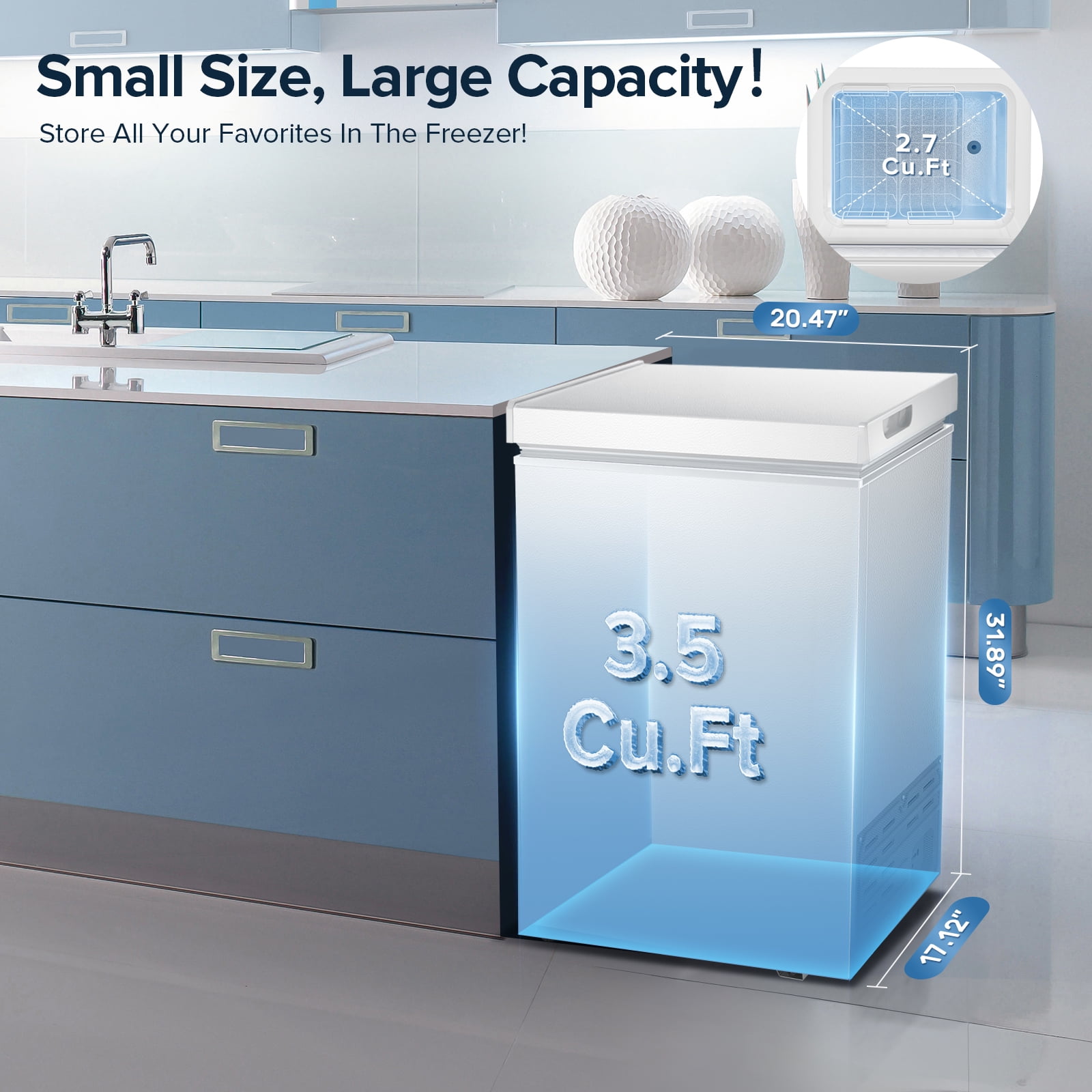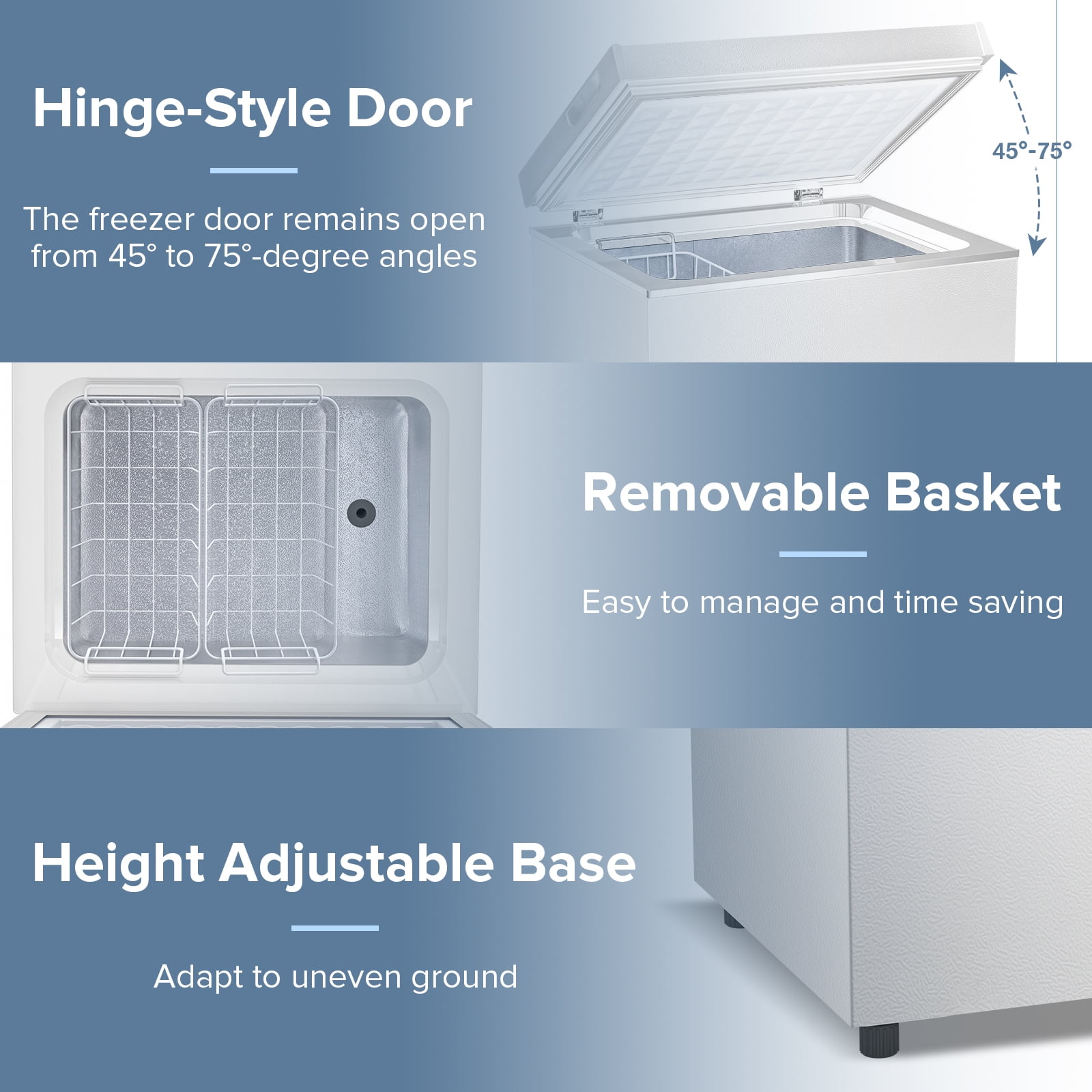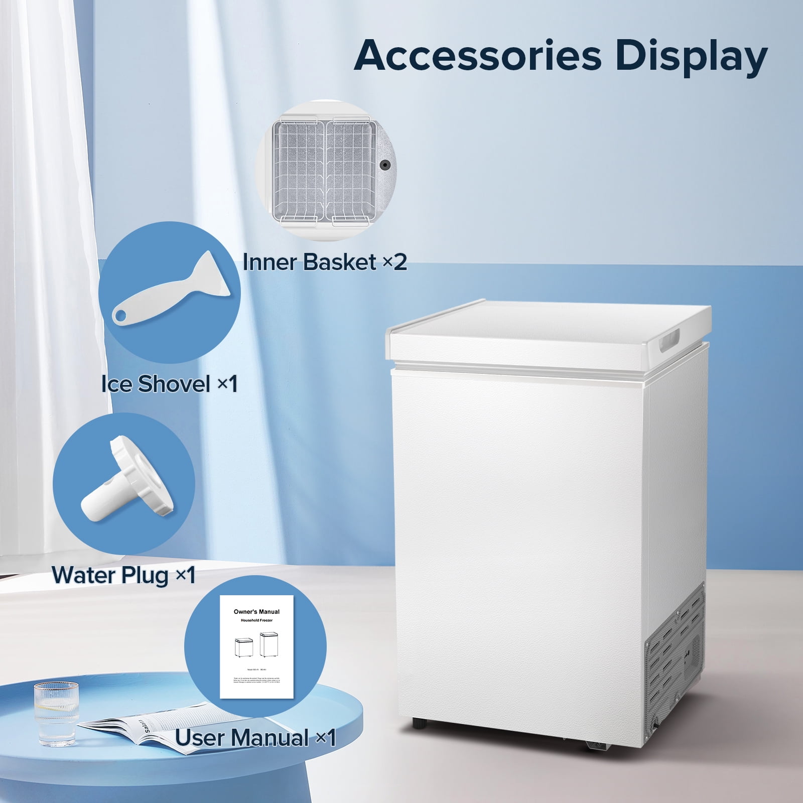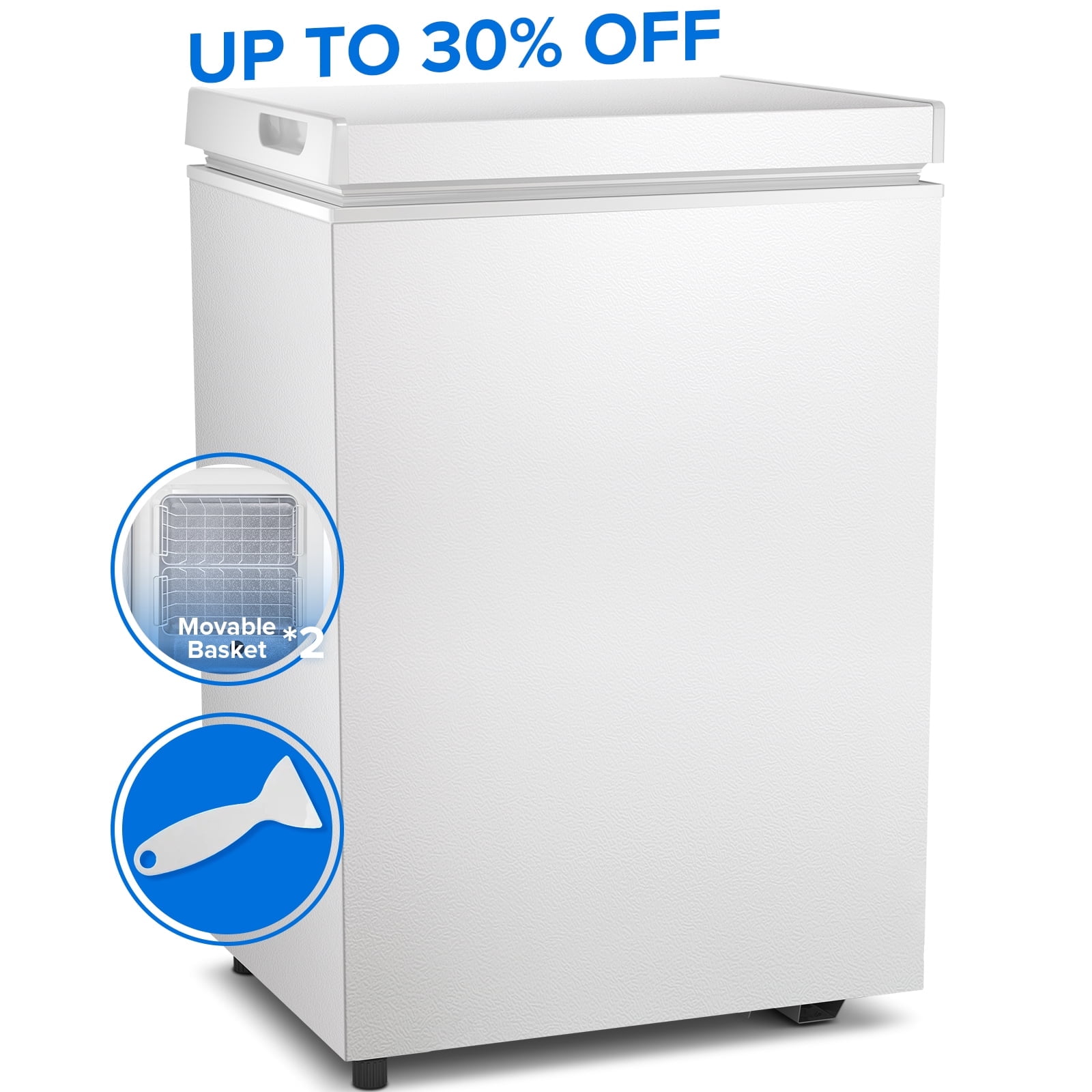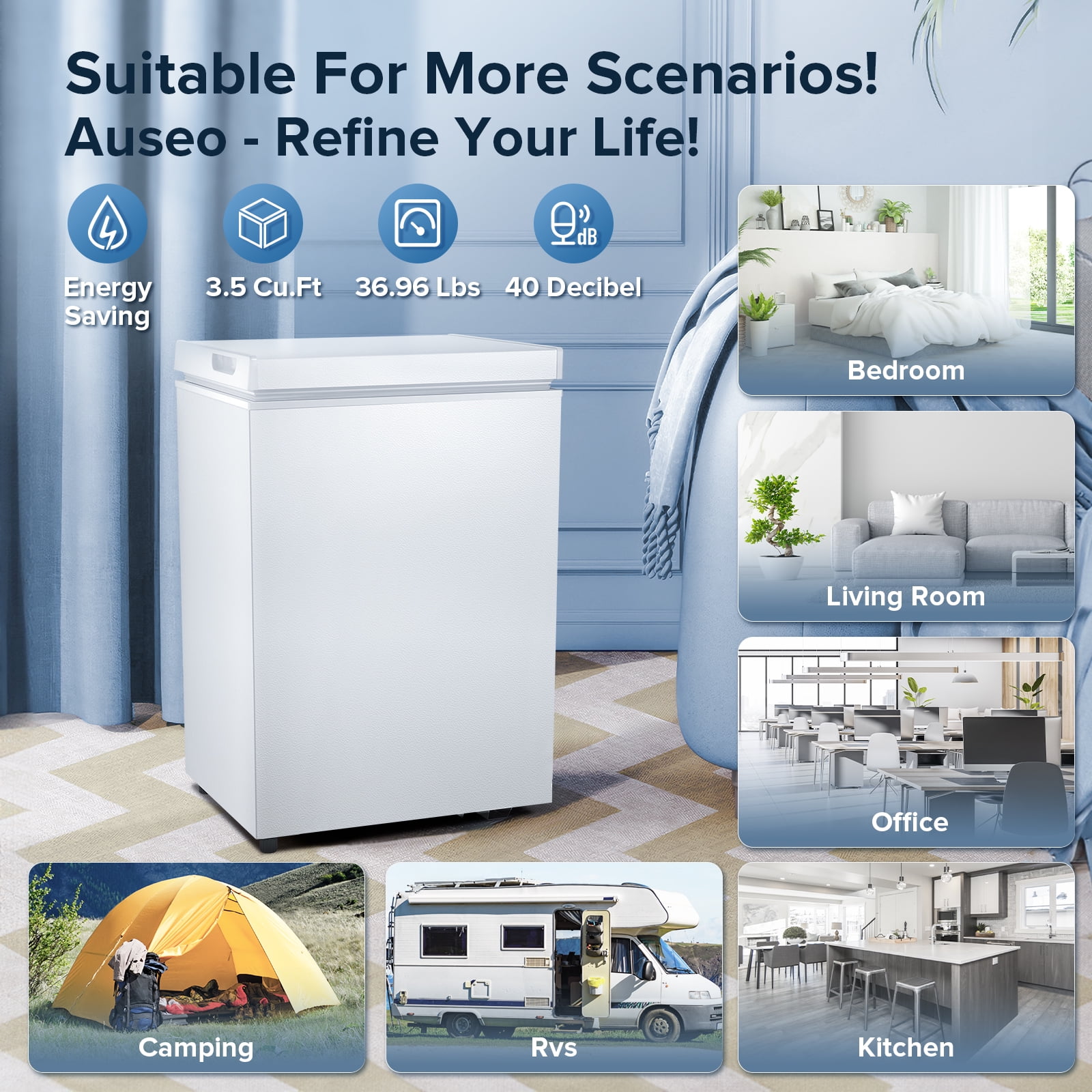 Auseo Mini Freezer Chest 3.5 cu ft, White Deep Freezer & Side Handle, Compact Freezer with 7 Gear Adjustable Temperature, Removable Storage Basket*2, Energy Saving
