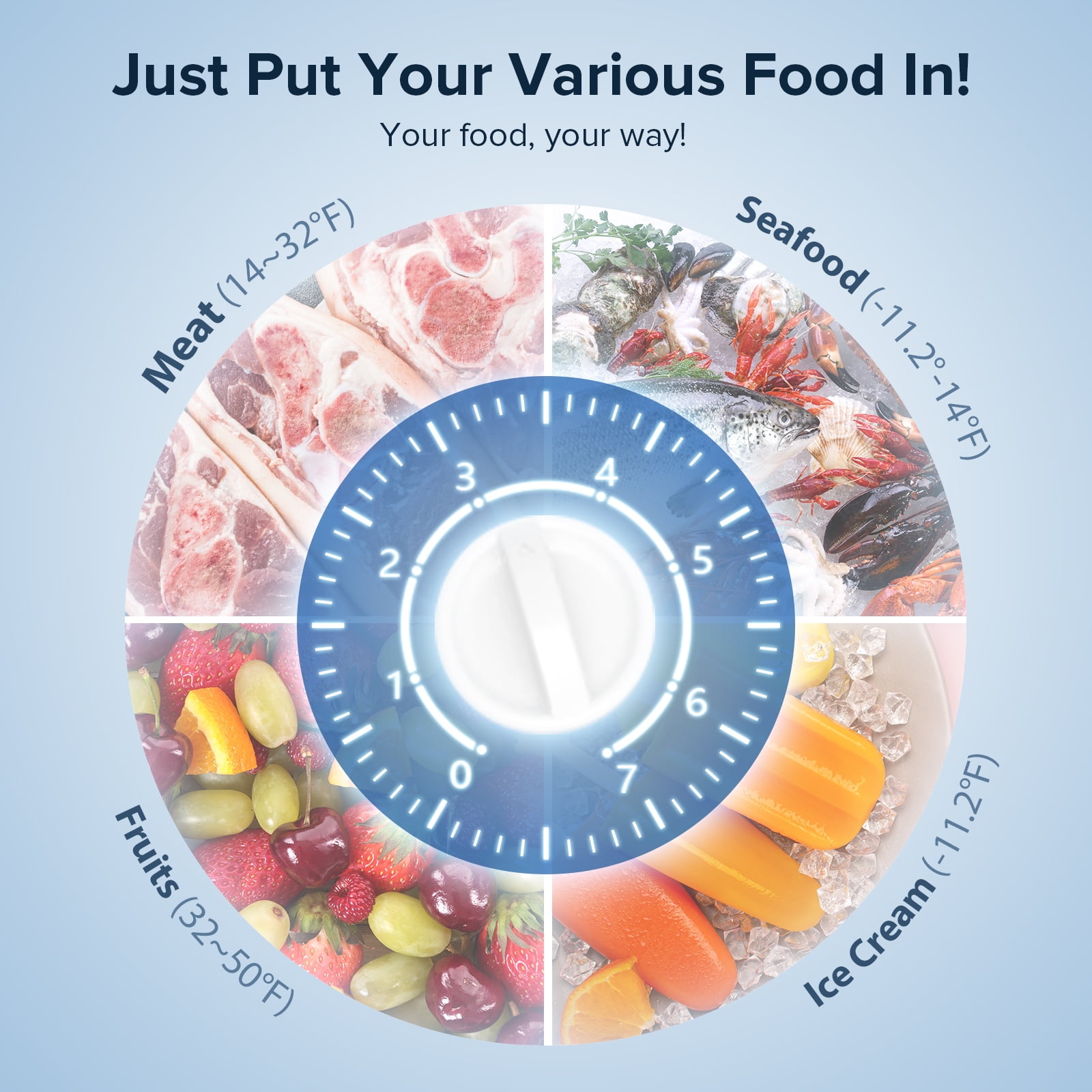 ❄️ COMPACT SIZE & LARGE STORAGE CAPACITY: KISSAIR 3.5cu.ft. Vertical freezer provides sufficient storage space for all your refrigeration needs. With its size of 19.37*17.72*32.83inch, you can store all kinds of items, including frozen food, meat, vegetables and so on. Say goodbye to the crowded freezer and enjoy the convenience of having enough space to store frozen necessities. ❄️ QUIET OPERATION: We understand the importance of a peaceful environment, which is why our compact refrigerator is designed for quiet operation. The noise of our products is less than or equal to 40 decibels. As the noise level is kept to a minimum, you can carry out daily activities at home or in the office without any interference or interference. ❄️ CUSTOMIZABLE TEMPERATURE SETTING: This freezer is equipped with 7 temperature settings, so that you can accurately control the freezing conditions. Whether you need mild refrigeration to preserve some items or deep refrigeration for long-term preservation, our refrigerator can flexibly adjust the temperature according to your preference. ❄️ CONVENIENT DETACHABLE BASKET: In order to increase convenience and arrangement, our refrigerator comes with a detachable basket. This allows you to easily separate and access your small items or common items without rummaging through the whole refrigerator. Keep the refrigerator clean and orderly, and maximize the storage efficiency. ❄️ SUITABLE FOR A VARIETY OF SCENARIOS: Our freezers are versatile and can be used in various occasions, including homes and offices. Whether you need extra freezing space in the kitchen or a dedicated freezer in the workplace, this compact freezer can perfectly adapt to any environment and provide convenient and reliable freezing function. Upgrade your freezing experience with our horizontal freezer, providing spacious storage capacity, quiet operation, customizable temperature setting, convenient movable basket, and various use options suitable for your home or office. Enjoy the benefits of efficient freezing and orderly storage. Order today to improve your freezing ability!