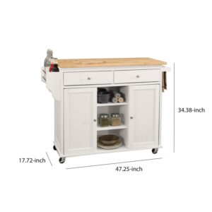 Kitchen Cart With Wooden Top, Natural and White- Saltoro Sherpi