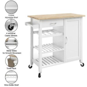 – MODERN FARMHOUSE STYLE – Not only does this kitchen island provide practical organization and storage, but the clean white base and oak-look finish of the top of this stylish rolling cart will pair well with modern farmhouse decor.
