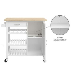 Kitchen Island with Towel Rack and Shelves for Storage a Rolling Cart to Use as Coffee Bar, Microwave Stand, or Kitchen Storage by Lavish Home (White)