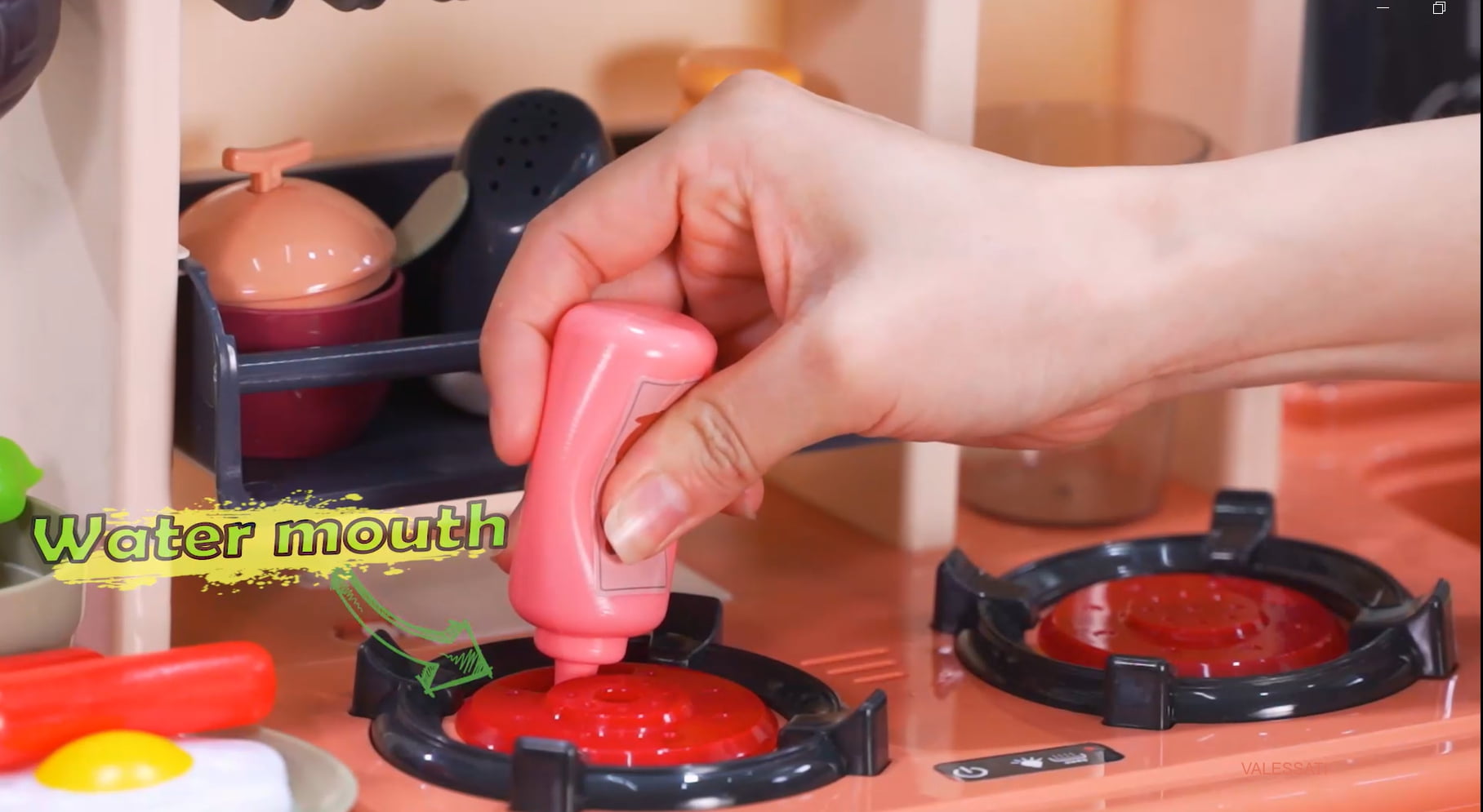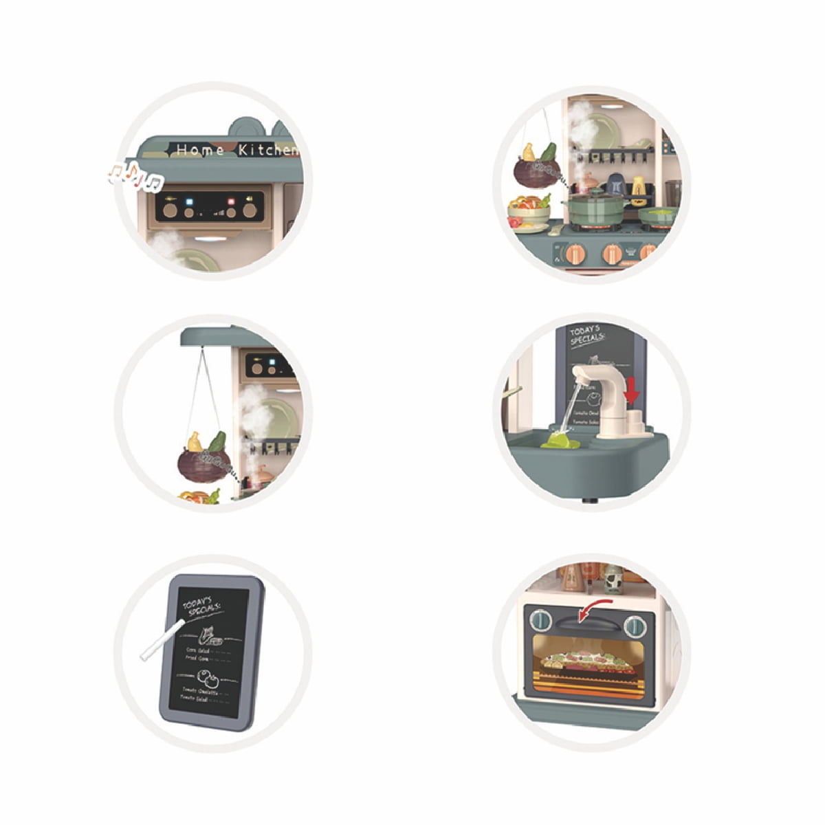 Kitchen Set for Kids 43 Pcs New Model Pretend Play Cook W Light Steam, Water Features by VALESSATI