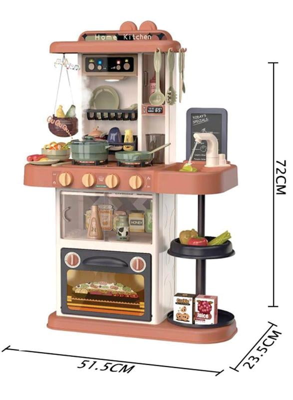 NEW KITCHEN SET MODERN Kids Pretend play: 43-Piece Play Kitchen Accessory Set included electronic stovetop, play sink with running water, rotatable shelf, Mini blackboard and different kinds of kitchen accessories. Various cooking utensils for your little one to have countless hours of fun and play. Product Dimensions (L*W*H): 21*10*29 inches. Electronic Stovetop: Pretend stovetop burner features realistic electronic lights and Sounds. Place the pot and pan on the stove, turn on the button, Spray will comes out while your kids cooking. Working lights, sizzling sounds, simulation of spray and play sink add to the pretend play fun!. Fun and Educational Role Play Kitchen Toy: Simulated Kitchen Toy with many realistic cooking utensils,your little one can role-play with their friends or parents, learn to identify colors of vegetables and fruits while playing, improving their hands-on, imaginative, language and social skills. This educational toy will also help your child develop fine motor skills, hand-eye coordination and social skills as they play with this toy. They will also learn about colors, shapes, numbers and food names as they explore different ingredients and recipes. This kitchen toy set is made of durable and safe plastic material that is easy to clean and store. This is an ideal gift for birthdays, parties, Children’s Day, Christmas, Halloween, Thanksgiving and New Year’s Day, suitable for boys and girls, for ages 3 4 5 6.-