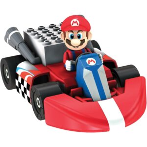 With this Nintendo K NEX Mario Kart Sets, Mario and Diddy Kong’s Fire Challenge, children can race each other with their favorite Wii characters. Your little ones can bring the Mario Kart Wii game to life as they race Mario and Diddy Kong through a series of fire-themed obstacles in this K NEX Mario Kart Wii Play Set. Children can combine this K NEX Mario Kart track with other sets from the Mario Kart Wii Series to build even bigger tracks. The K NEX Mario Kart Wii Play Set is equipped with a total of 246 pieces and 21 pieces of track. The Nintendo K NEX Mario Kart Sets, Mario and Diddy Kong’s Fire Challenge also includes two standard karts, two moving obstacles; fireballs and fire cogs, two super-fast, battery-powered motors for karts and two awesome collectible items: star and spiked-blue shell. Batteries not included.