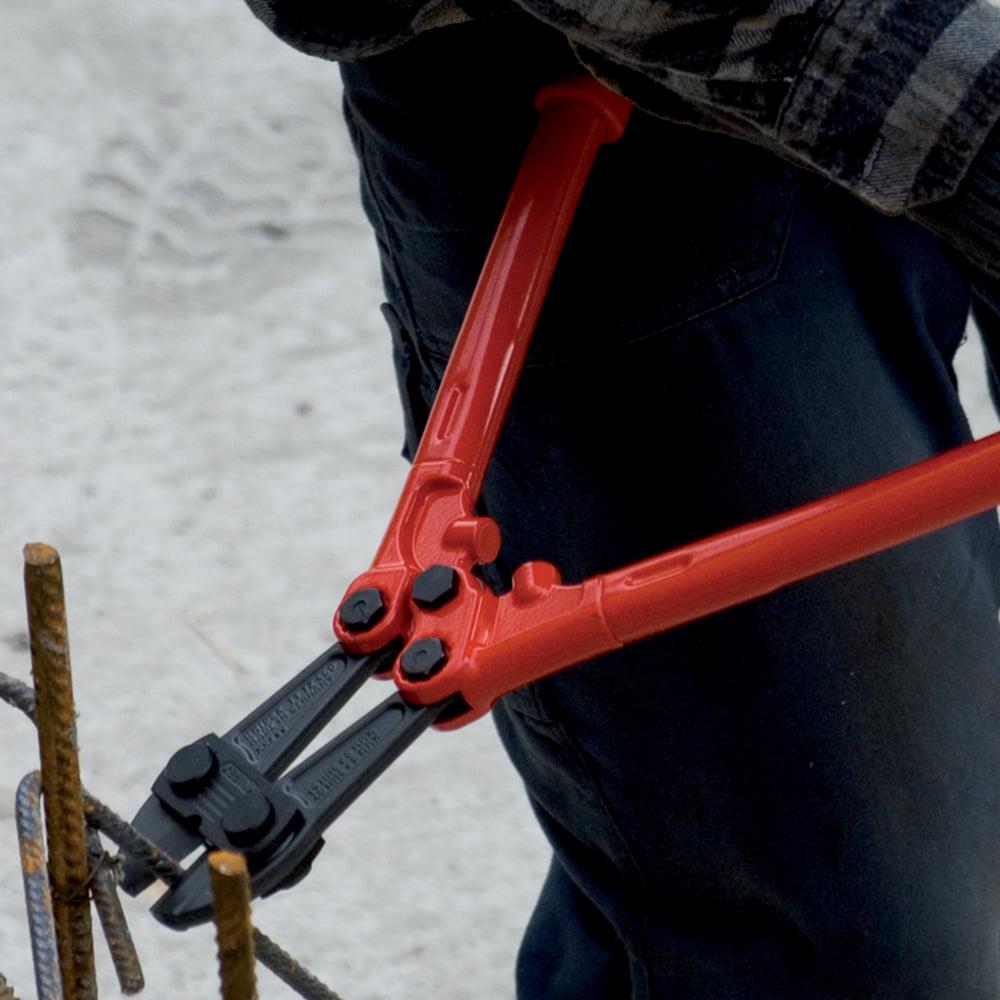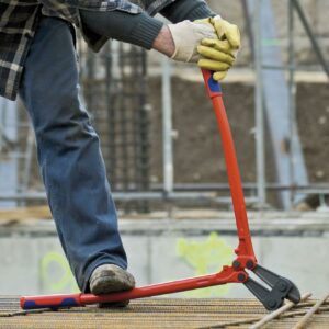Knipex Tools large bolt cutters provide high cutting performance with minimal effort due to the coordination of the cutting-edge angle, transmission ratio and ergonomic handle shape. Knipex Tools large bolt cutters feature precise 12 position adjustment (by cam bolt) and high cutting performance. The bolt cutter head is replaceable, and the blade is forged from chrome vanadium, heavy-duty steel. The joints is forged from special tool steel and the handle is crafting from steel tube and power-coated.