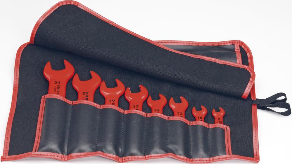 - Containing a range of 8 insulated Knipex open end wrenches for working on electrical installations