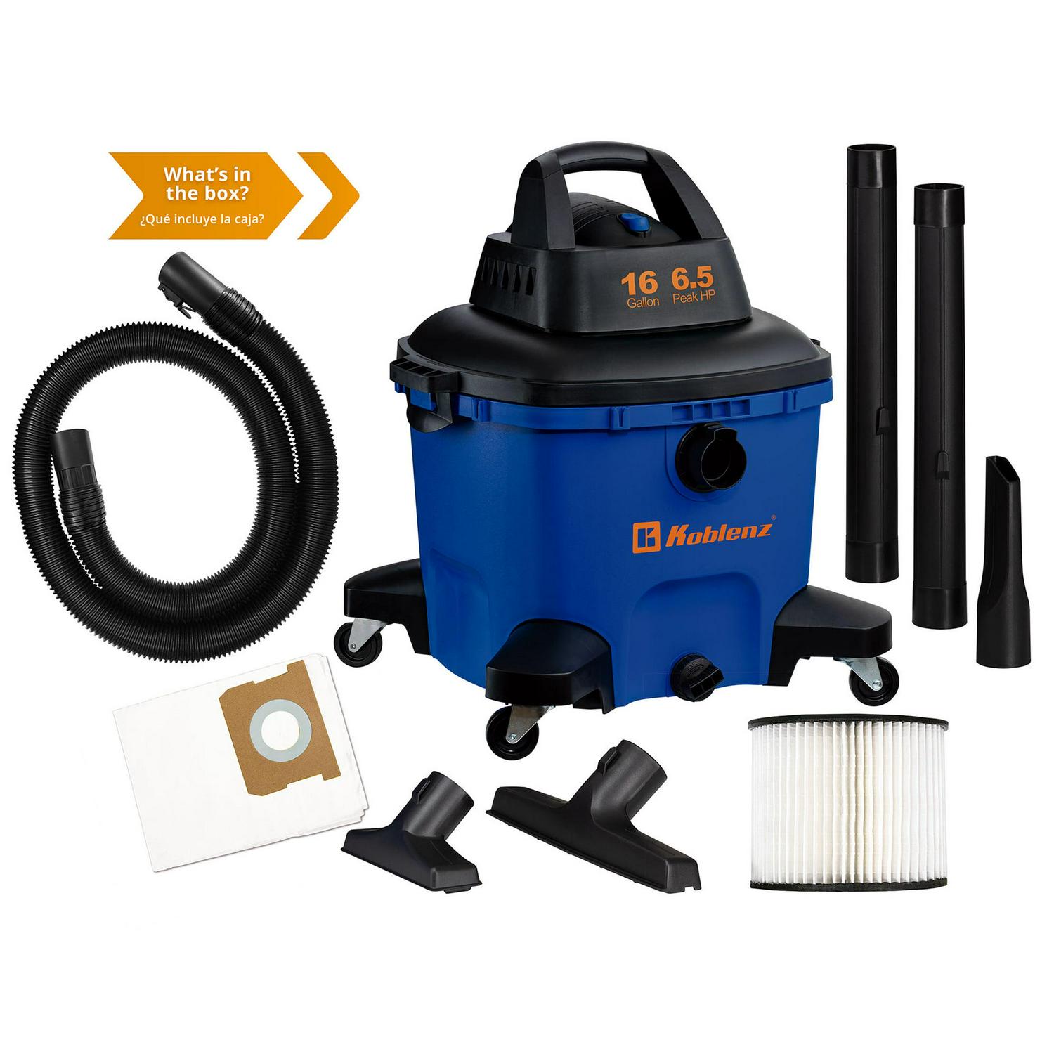 KOBLENZ 16 Gallon, 6.5 Peak HP Wet Dry Shop Vacuum, 3 in 1 shop vac (WD-16L4)